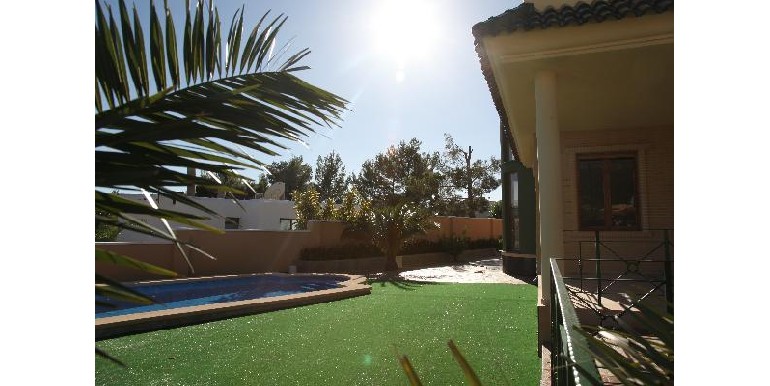 Villa is spread over three floors. Bright living room with fireplace, large dining room, kitchen, bathroom and bedroom with a bathroom. On the second floor there are 2 bedrooms with large wardrobes and bathrooms and two large terraces. The ground floor there is a sauna, gym, lounge, 1 bedroom and access to the garden with palm trees and Mediterranean plants, swimming pool and barbecue area.