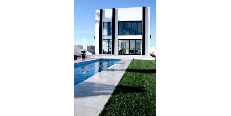 Made in minimalist design. Well connected with the mediterranean highway. Only 15 minutes from Alicante and beaches area; 20 min from Murcia and 10 minutes from the airport and Elche. The house has 3 bedrooms and 3 bathrooms, air conditioner, 2 jacuzzi, wide living room, private pool with sound effect under the water. The houses area is 180 m2; garage has 80 m2; the plots area is 2000 m2 approximately.
