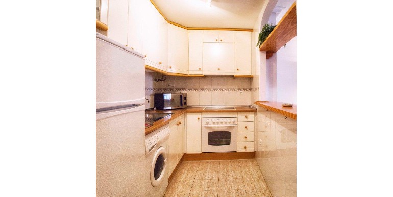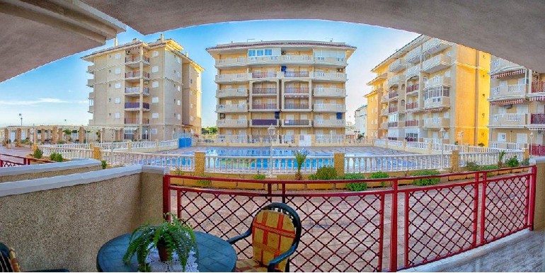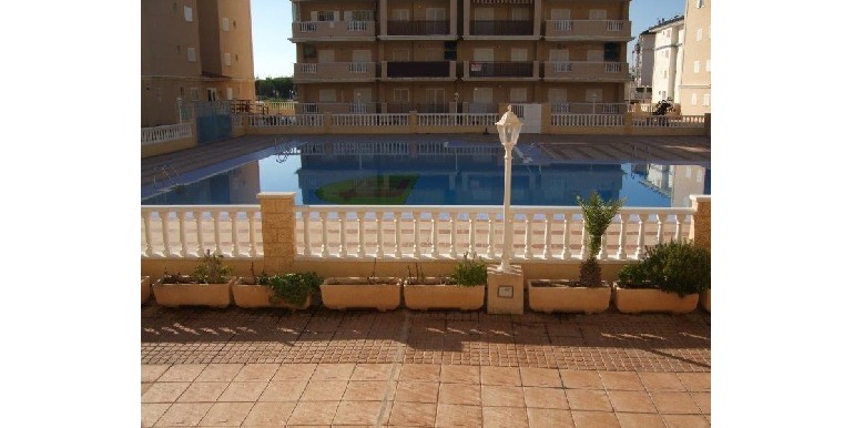 Set in small complex and overlooking pool from large ground floor balcony. A bight and spacious one bedroom apartment, bathroom, living room and american kitchen. Sold furnished, with air con and fully equipped & ready to move in. Close to all amenities