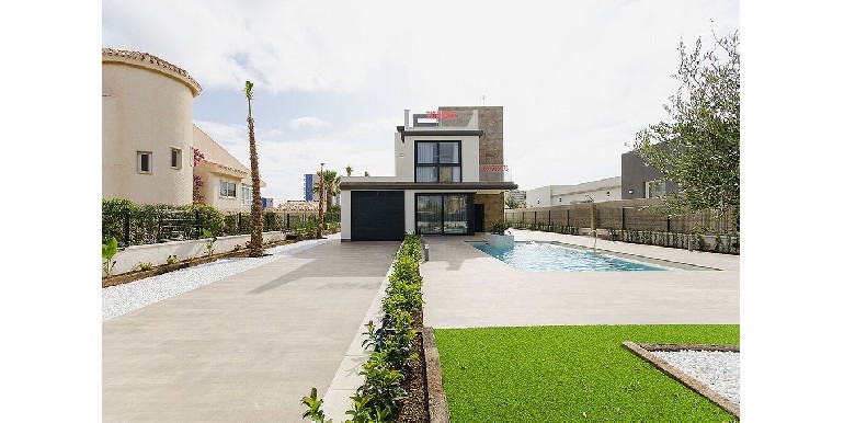 Stunning new modern style villa set over 3 floors of approx 156m2 and with private pool set in large plot with garden. Has 4 bedrooms and 3 bathrooms, spacious and bight it has large living & dining room, french kitchen and also includes large basement. Furnished and with appliances.