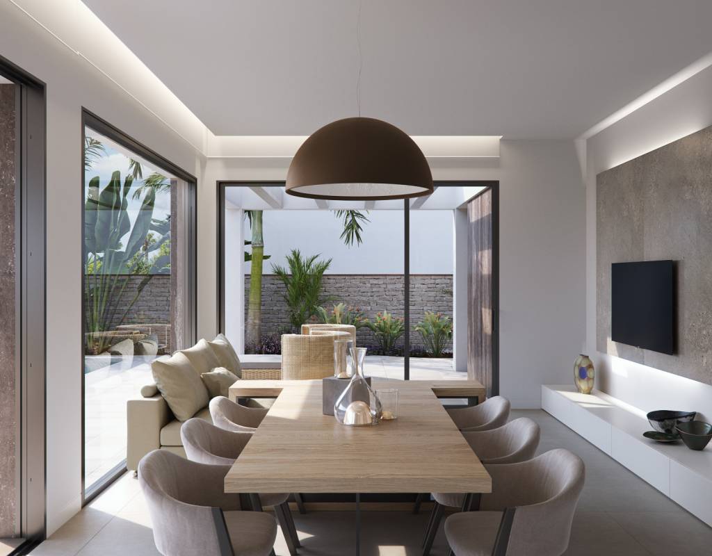 This villas consist of 3 bedrooms, possibility of 4 or 5 bedroom options available, two of them with full bathroom and dressing room, spacious and bright living areas with large windows offering an abundance of light, the kitchen is fully furnished including electrical appliances. The living & dining room allow direct access to the pool and private garden areas.