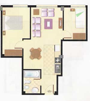 La vivienda tiene 2 dormitorios, 1 baño completo, cocina tipo americana.