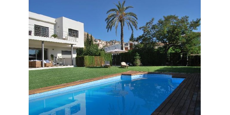 Vivienda de Quinientos metros cuadrados útiles en tres plantas (garaje, planta baja, y planta primera), (7 habitaciones + 3 salones+3 baños+ 1 garaje+1 instalaciones) sobre parcela de 760 metros cuadrados, con ascensor, domótica avanzada, piscina 9x5 y bahía en madera de ipe. .- Descripción: --Jardín con Piscina --Planta baja: ---Entrada. ---Despacho. ---Cuarto de baño1. ---Dormitorio 1. ---Salón. ---Cocina. --Planta primera: ---Distribuidor. ---Dormitorio 2. + Terraza ---Cuarto de Baño2. ---Dormitorio 3. ---Salón + Terraza ---Suite: Dormitorio + Vestidor + Cuarto de baño 3. --Planta garaje : ---Gimnasio + cuarto playstation . --- Amplio garaje. ---Despensa. ---Despacho-estar. ---Cuarto de Instalaciones. A destacar: .- Domótica e instalaciones: La domótica centraliza el control entre otras de las siguientes funciones : Aire acondicionado Calefacción Agua caliente sanitaria por placa solar + apoyo electrico Seguridad ( Alarmas: interior ? exterior ? cámaras perimetrales e interior) Riegos Niveles y trasvases de depósitos de Agua potable (1000 lts.) y de riego (9000lts.) Programaciones de piscina Control de escenas pre-programadas ( iluminación, seguridad, climatización). Histórico de eventos Control remoto vía móvil .- Las instalaciones con las que cuenta la vivienda entre otras son: --Ascensor Tipo hidráulico, marca Orona ( 4 personas) -- Descalcificadora y filtro de osmosis inversa --Aire acondicionado + Bomba de calor por conductos. --Calefacción eléctrica bajo consumo (calor azul) --Instalación placas solares ( fotovoltáica de conexión a red) --Red de fontanería en paralelo para recogida de aguas pluviales en depósito de riego. --Riego de jardín por sectores programable. --Persianas ?Gradhermetic? en toda la vivienda (eléctricas, lamas graduables tipo mallorquina y conectadas a la domótica. --Piscina (con depuradora e iluminación) --cobertizo exterior aperos de jardín