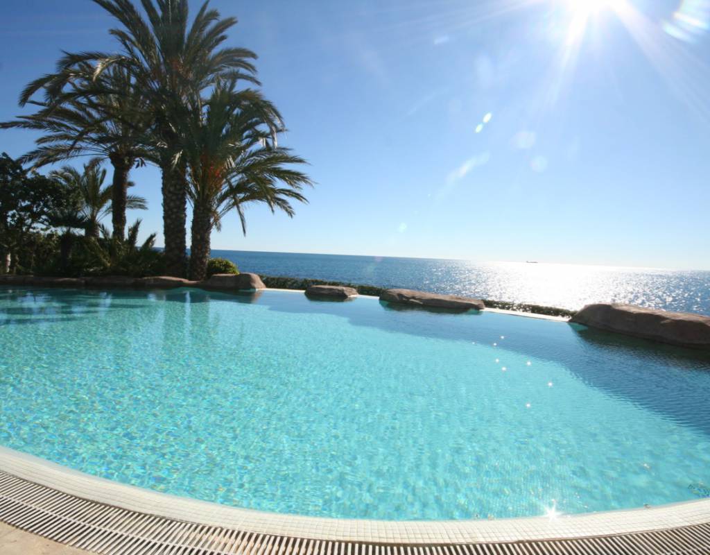 La Villa, tiene 6 habitaciones y 6 baños en suite, gran salón comedor con acceso a su hermosa terraza, con vistas a preciosas palmeras, piscina temática y hermosisimas vistas al mar, en la planta baja, existen estancias, bodega y acceso plaza de garaje par 3 coches.