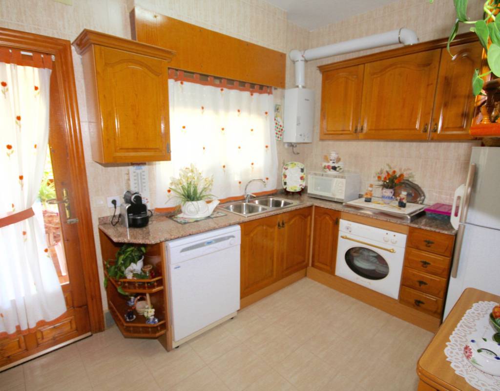 En planta baja, cocina independiente con acceso a terraza posterior, donde encontramos un aseo de cortesía, hall de entrada a vivienda por gran terraza, salon comedor y acceso a habitación dormitorio.