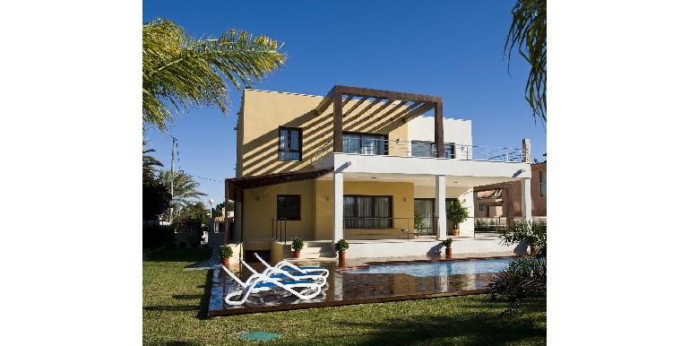 Moderno chalet de nueva construcción. Se encuentra a escasos metros de la playa de arena fina. Chalet tiene 5 dormitorios, 4 baños y 2 aseos, 2 vestidores, trastero y despensa, también hay espacioso y acogedor salón en cada planta. En el sótano se prevén sauna, bodega, gimnasio.