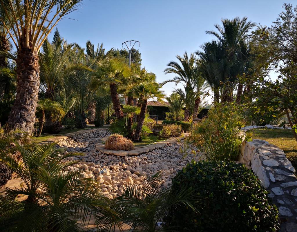 El jardín contiene un depósito de agua de 30.000 litros, sala de bombas con sistema de riego y sistema de abono.
