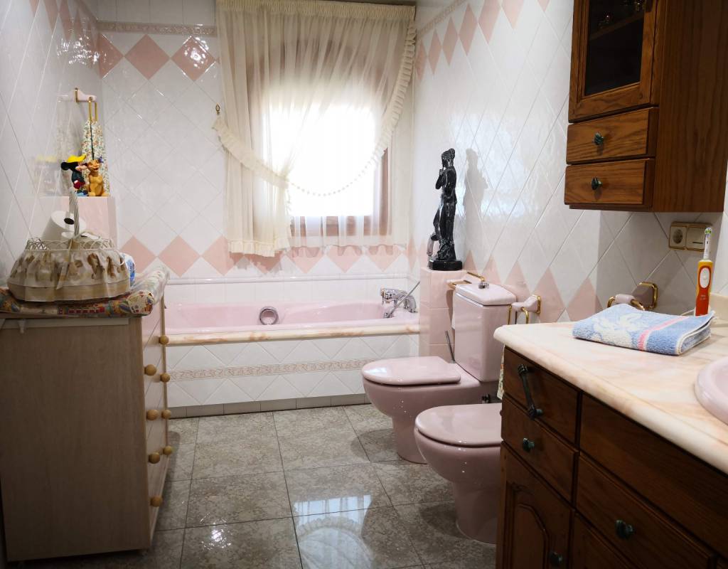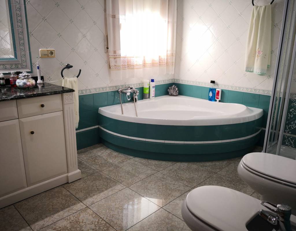 La Planta baja: gran porche, 4 dormitorios y 2 baños, salón, comedor, cocina independiente con galería. Suelos de mármol.