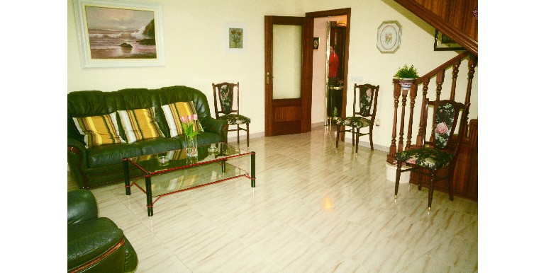 Primera planta salón con acceso a porche acristalado más jardín, cocina comedor totalmente reformada y equipada, con galería y aseo de cortesía.