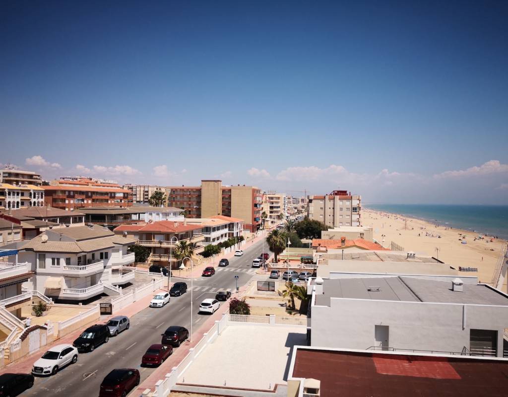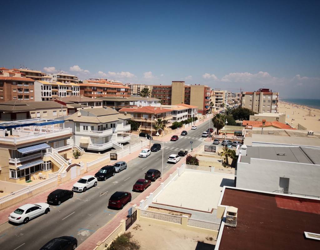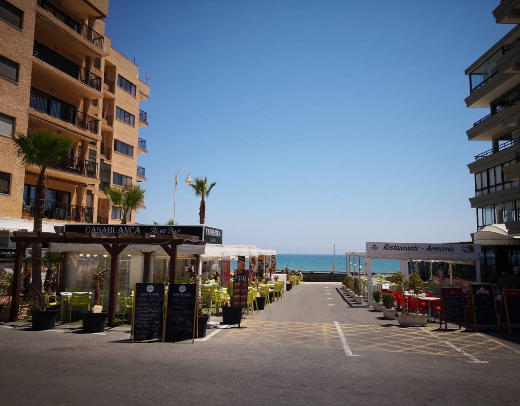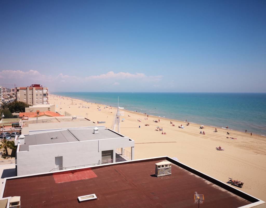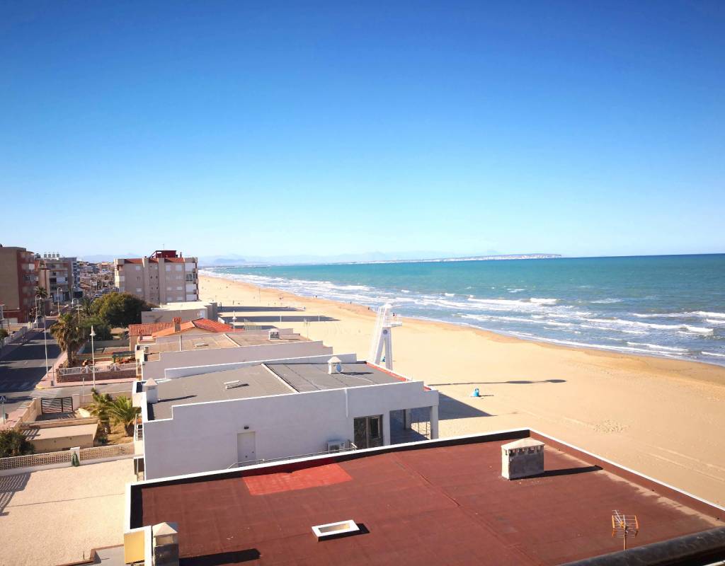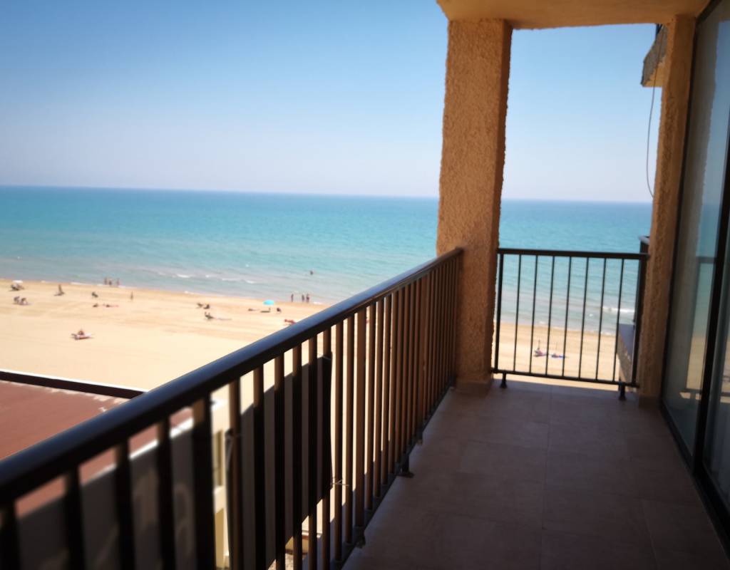 Tiene amplia terraza con vistas a la playa.