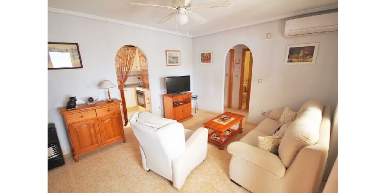 BUNGALOW EN ESQUINA CON 3 Dormitorios, 1 Baño (posibilidad de 2x), Salón comedor con chimenea, Cocina americana, Lavadero, Amplio jardin en esquina, Terraza acristalada, Solarium, Entrada de coche en parcela, Piscina comunitaria, Totalmente Amueblado, Aire Acondicionado