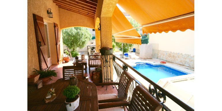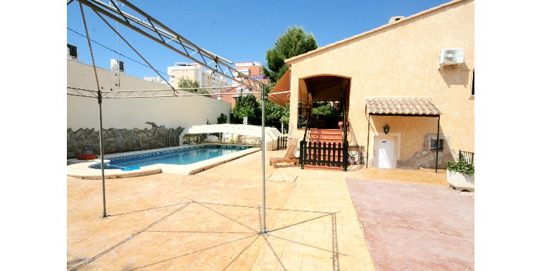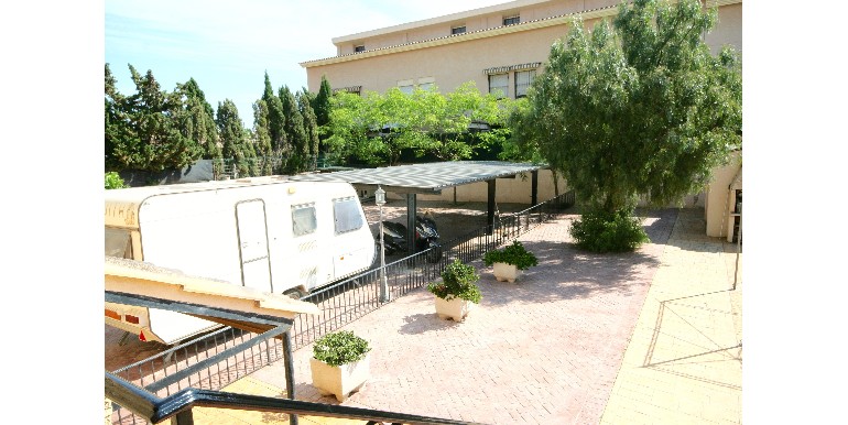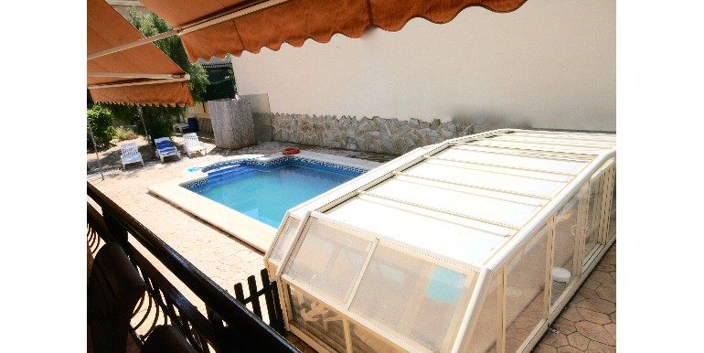Parcela con piscina cubierta, zona de aparcamiento, barbacoa y zona de lavado.