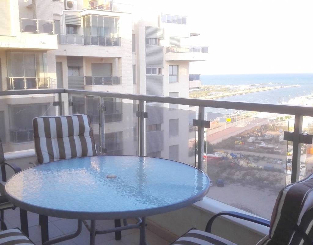 Impresionantes vistas panorámicas al mar desde la terraza de esta vivienda. Situado en el noveno piso; con vistas al puerto de Guardamar y ubicado a poca distancia de la playa.