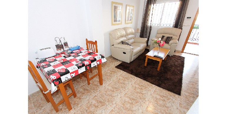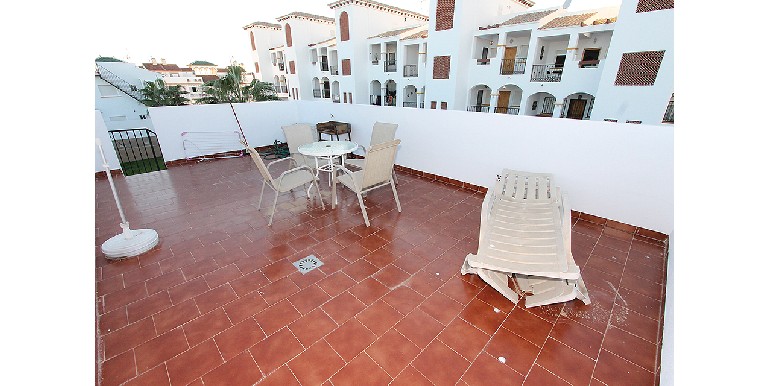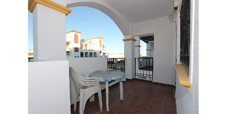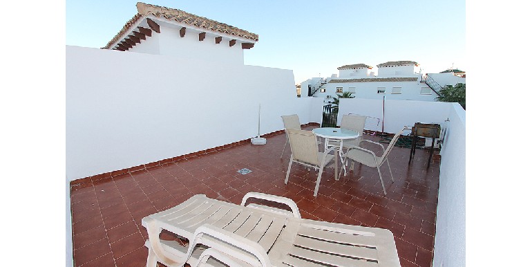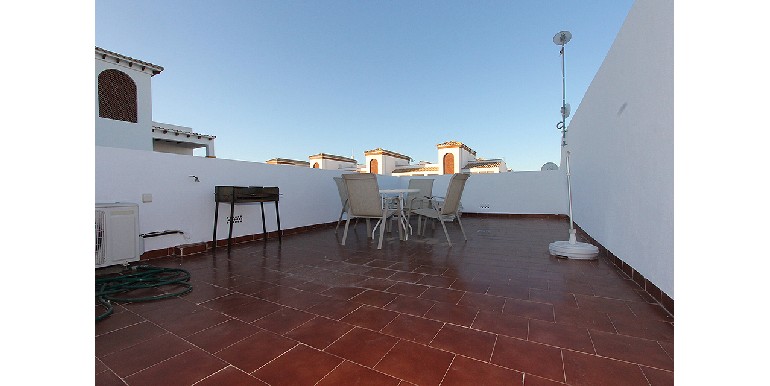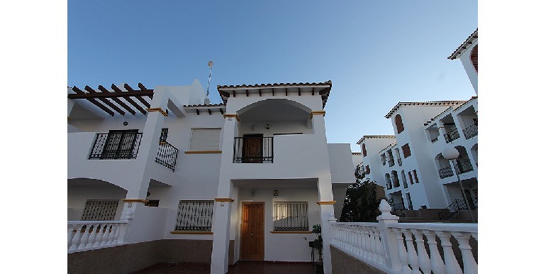 bungalow adosado en primera planta con una superficie de 75 m² de Vivienda, 8m² Terraza, 40m² Jardín, 60m² Solarium, con Orientación Norte, dispone de 2 Dormitorios, 2 Baños completos, Salón comedor, Cocina independiente, Galeria, Porche, Terraza, Plaza Privada, Piscina comunitaria, Aire Acondicionado, Amueblado y Alarma