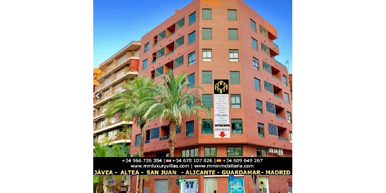 Se vende maravillosas vivienda de nueva construcción de 2 y 3 dormitorios en la mejor de las áreas de Alicante, con todos los servicios que puede ofrecer una gran ciudad metropolita como es alicante aeropuerto, estacion de tren de alta velocidad que comunica con barcelona y madrid en poco mas de una hora, cine teatros, estadio de futbol y mucho mas; sin tener que preocuparse por el aparcamiento ya que los pisos cuentan con una plaza incluida en el precio. El edificio esta situado en una buena zona , relativamente tranquila, por lo que se puede disfrutar de la amplia terraza de 18 metros cuadrados, no sufrirá las inclemencias de temperatura, ya que el piso se entrega con aire acondicionado asi como cristales dobles de climalit, por ello las viviendas cuenta con una excelente certificación energética. Una excelente oportunidad a un precio inmejorable.
