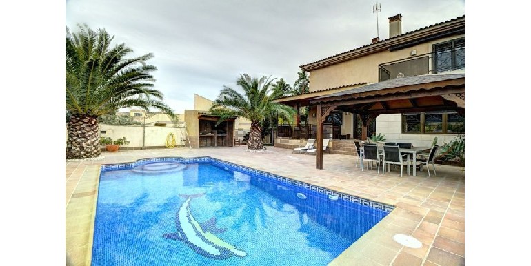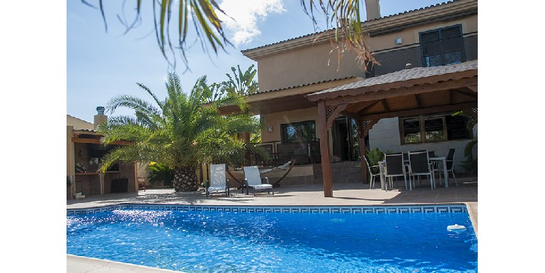 Cerramientos en climalit imitación madera, excelentes calidades en carpintería interior, herrajes y pintura, suelo cerámico, y en exterior piscina privada, cenador en madera, y barbacoa.Zonas ajardinadas con palmeras, y aparcamiento para coches