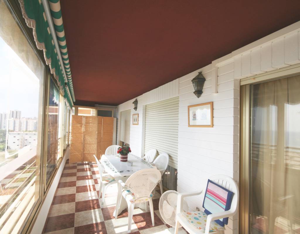 Apartamento con vistas espectaculares en una de las urbanizaciones más completas de Playa San Juan. 2 dormitorios grandes, 2 baños completos (uno de ellos en suite), cocina independiente y salón con gran terraza con vistas directas y despejadas a la playa. Parking exterior y trastero.