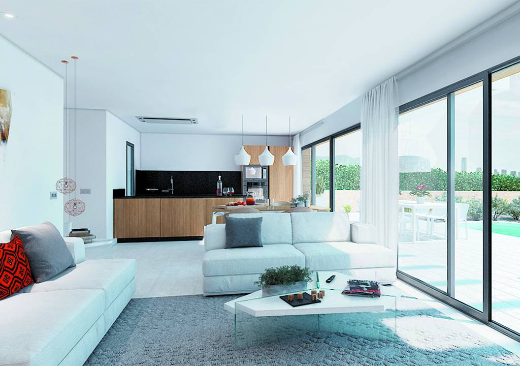 Villa moderna diseñada en una sola planta. Dispone de un agradable solarium en el cual podremos disfrutar del sol y clima mediterráneo durante todo el año.