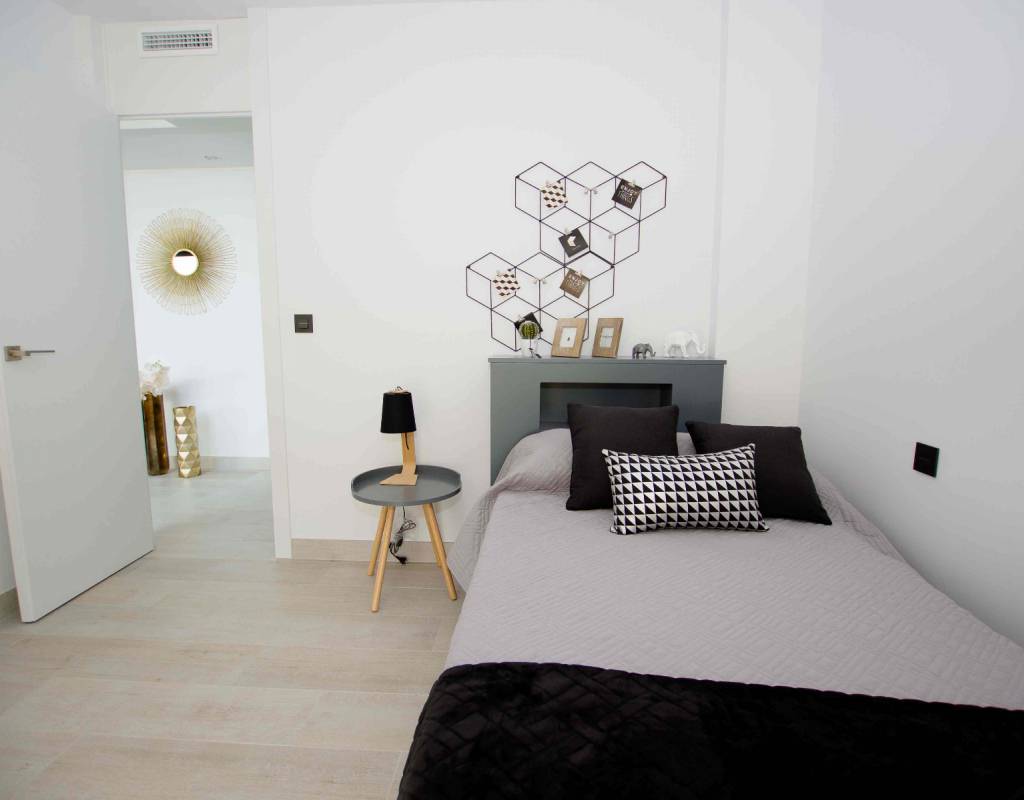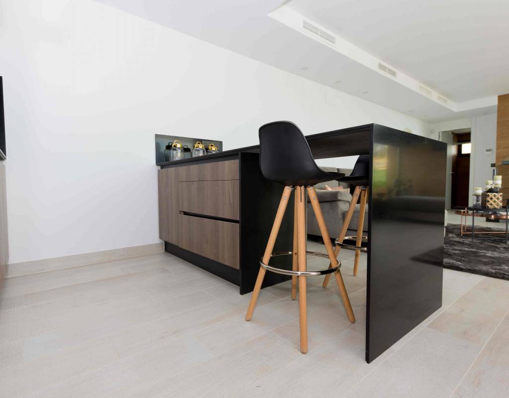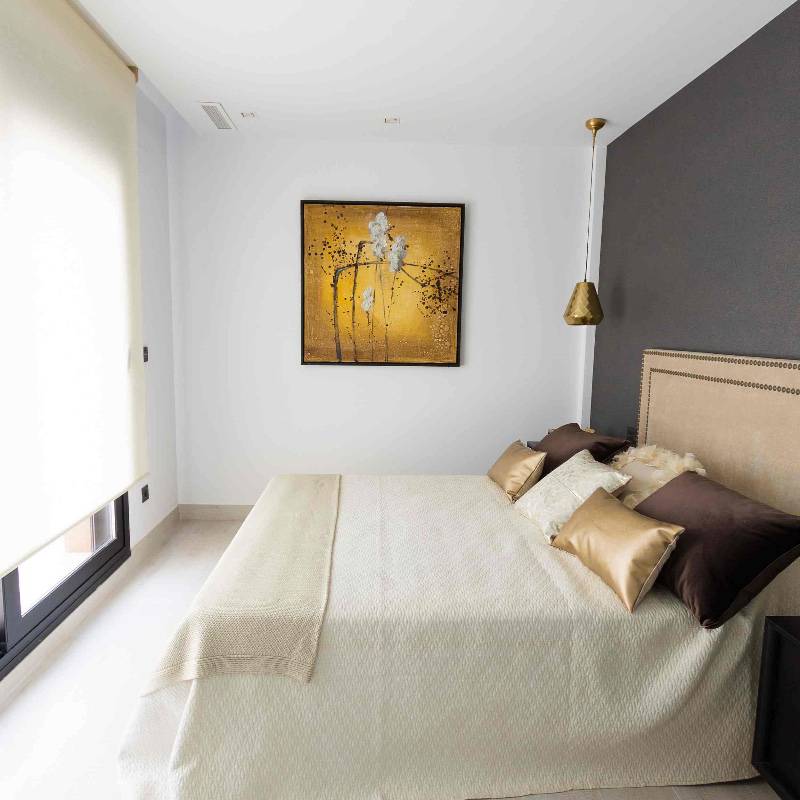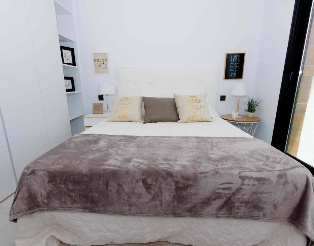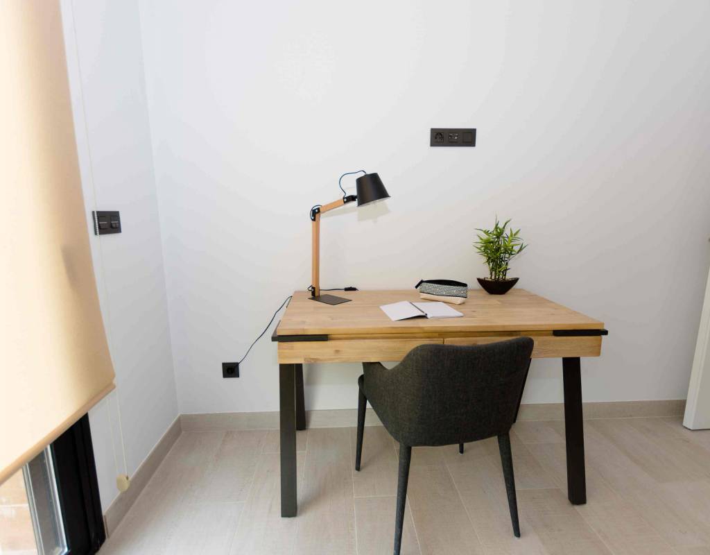 Está distribuida en dos plantas. En la superior se encuentra el acceso a la vivienda a nivel de calle, donde se encuentran dos habitaciones suite, una de ellas con terraza. En la planta inferior, encontraremos una habitación de matrimonio, un cuarto de baño, un luminoso salón comedor, con amplios ventanales y acceso directo a la piscina y jardín.