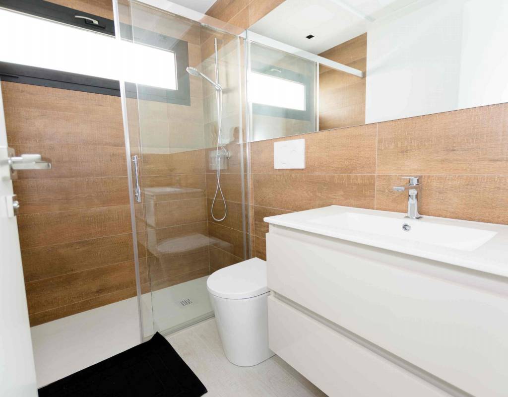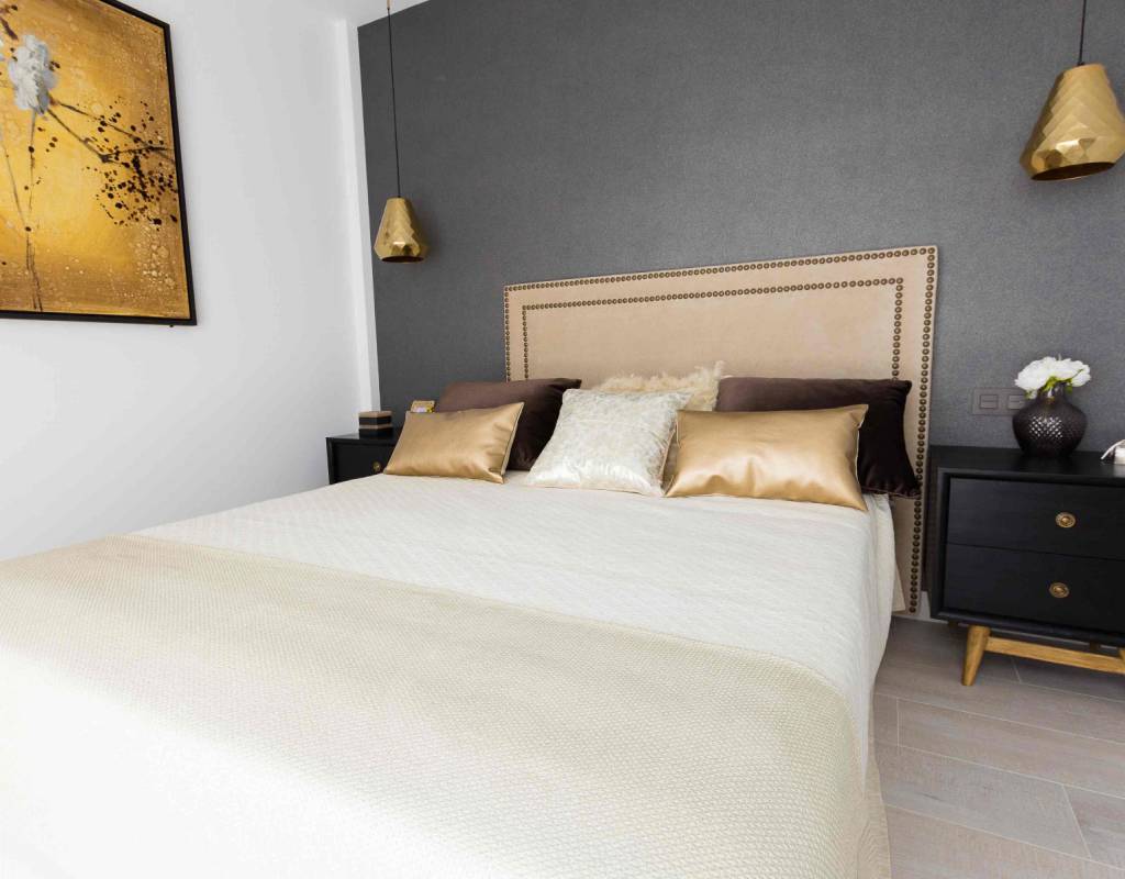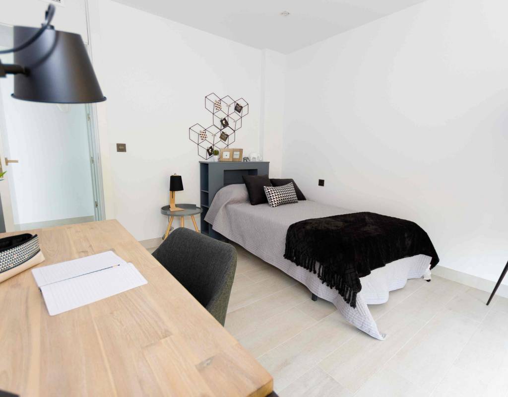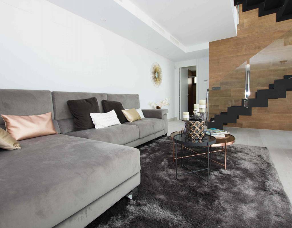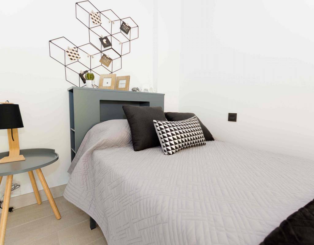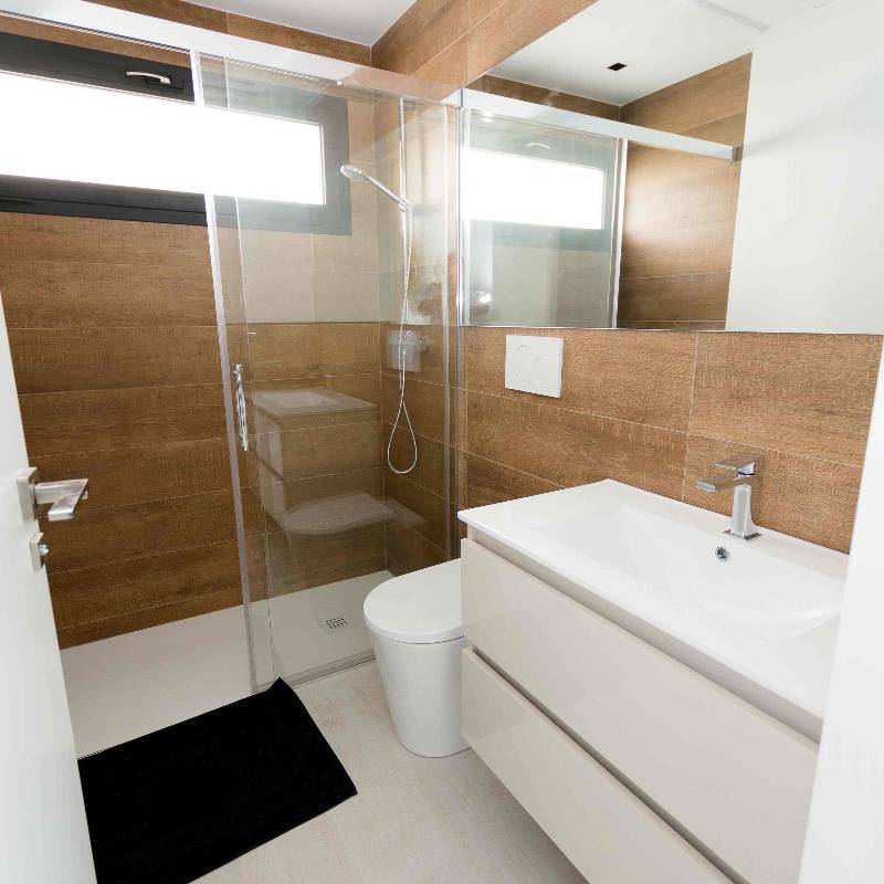 Está distribuida en dos plantas. En la superior se encuentra el acceso a la vivienda a nivel de calle, donde se encuentran dos habitaciones suite, una de ellas con terraza. En la planta inferior, encontraremos una habitación de matrimonio, un cuarto de baño, un luminoso salón comedor, con amplios ventanales y acceso directo a la piscina y jardín.