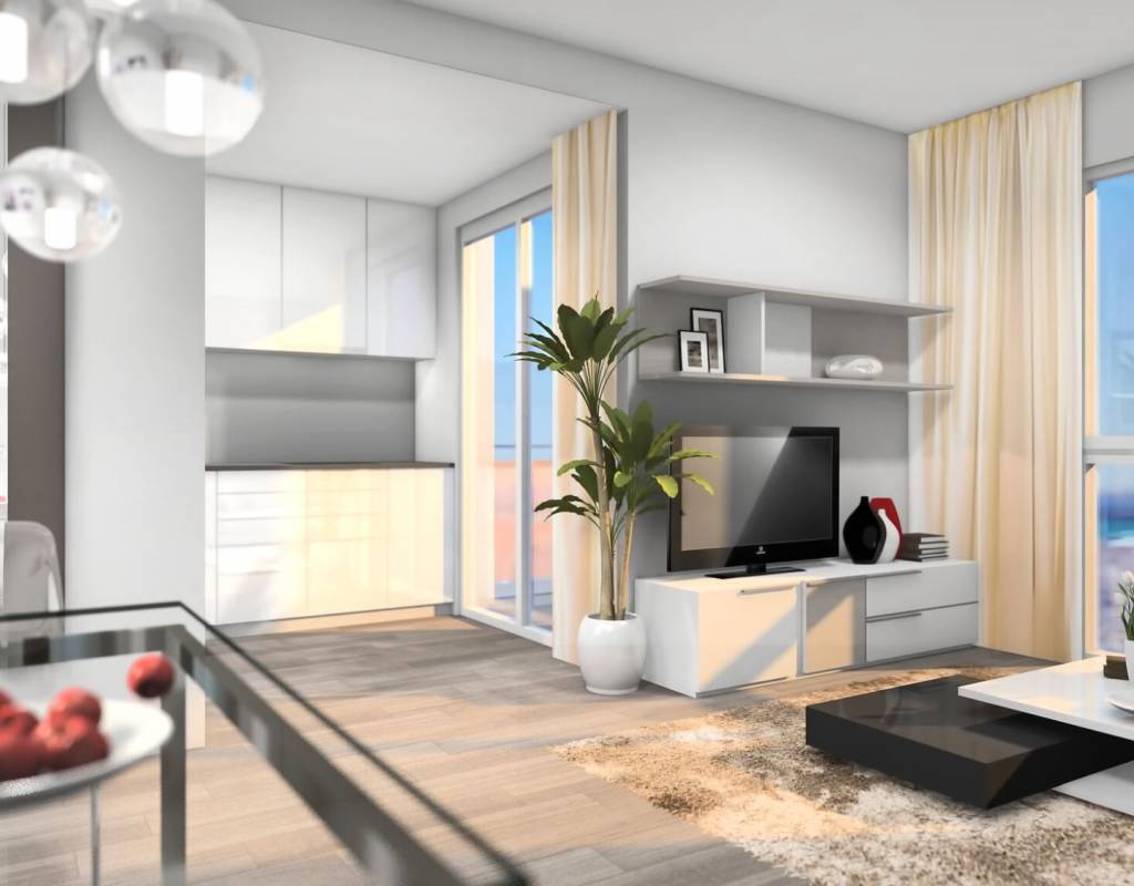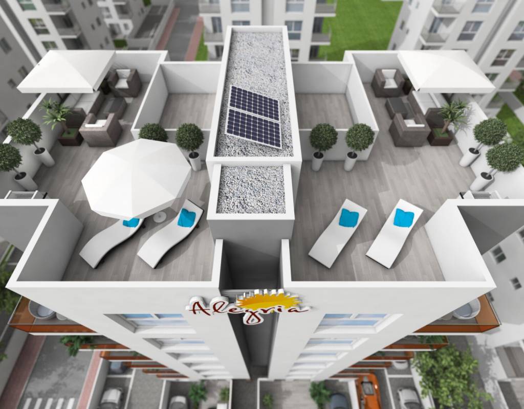 Consta de 2 dormitorios, 1 baño, amplio salón y comedor y cocina abierta. También tiene una gran terraza solárium (vistas al mar desde los plantas superiores).