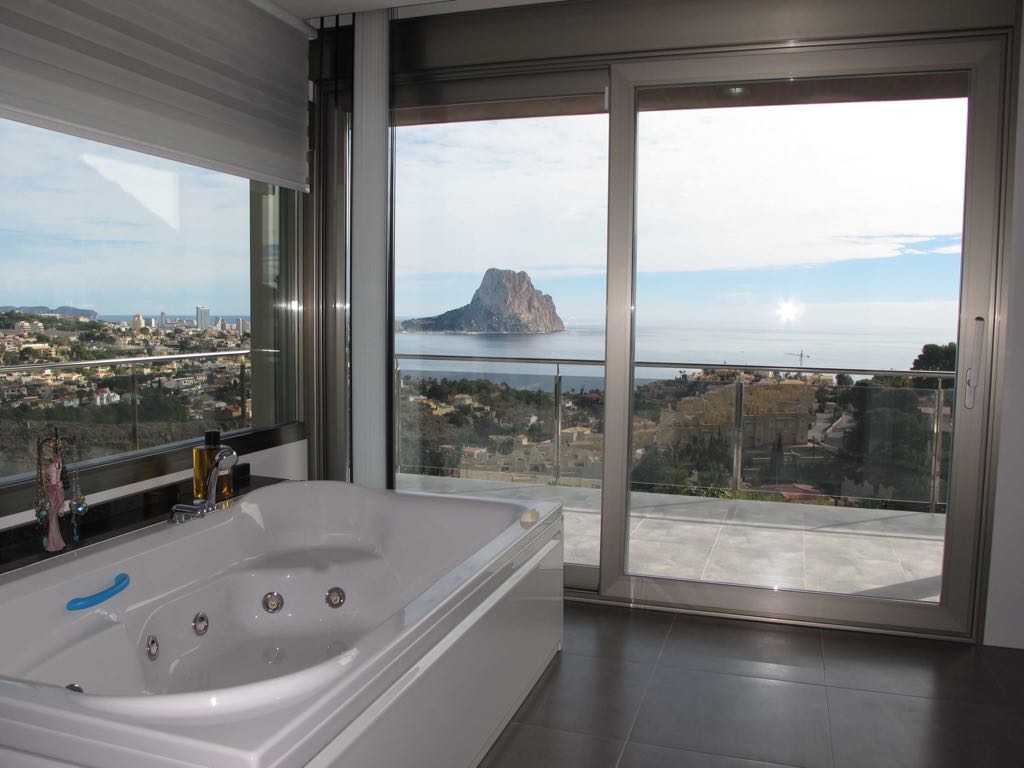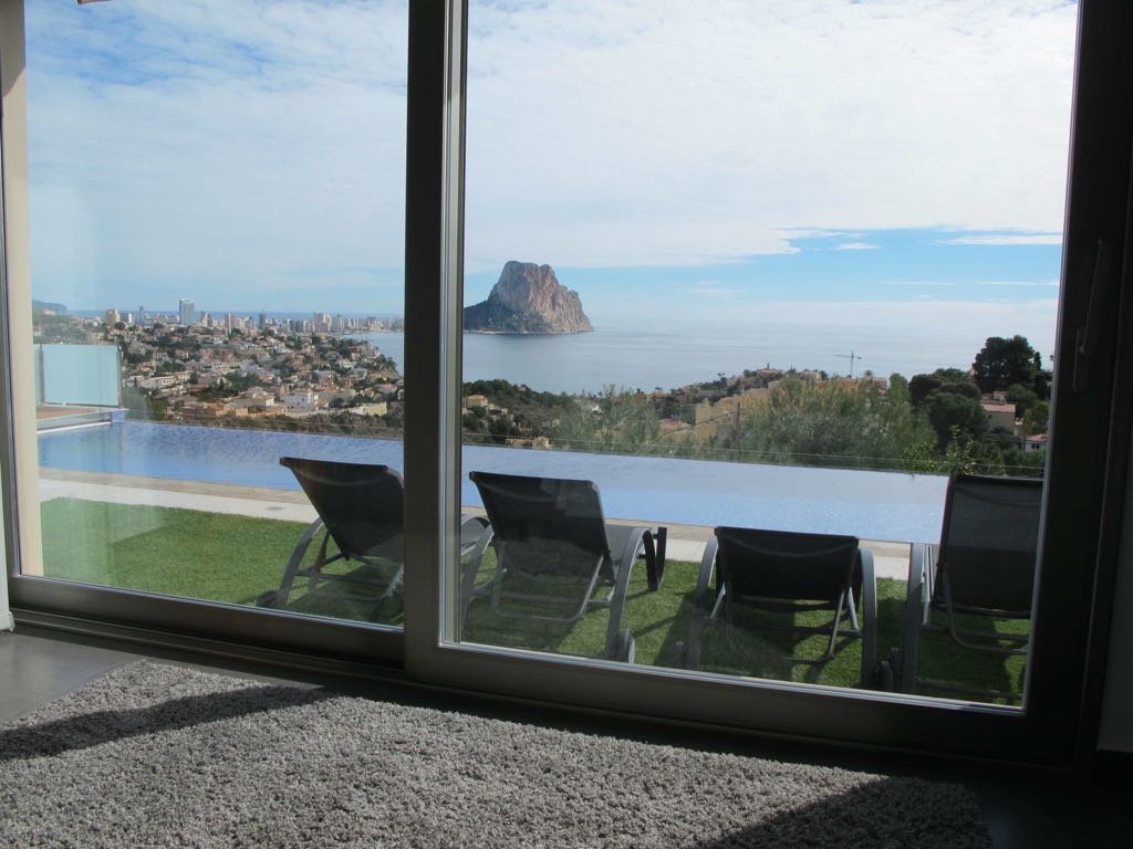 Preciosa Villa en Calpe, con impresionantes vistas al mar y al Peñon de Ifach de Calpe (Costa Blanca) , esta magnifica villa de estilo moderno es de reciente construcción con acabados de primera calidad, esta situada en una parcela de 1820 m2 , con amplias terrazas, parking, garaje cerrado que comunica con la vivienda. La vivienda tiene un total de 560m2 que se distribuyen en dos plantas, con un luminoso y amplio salón-comedor con acceso a la terraza y la piscina. La cocina abierta totalmente equipada.