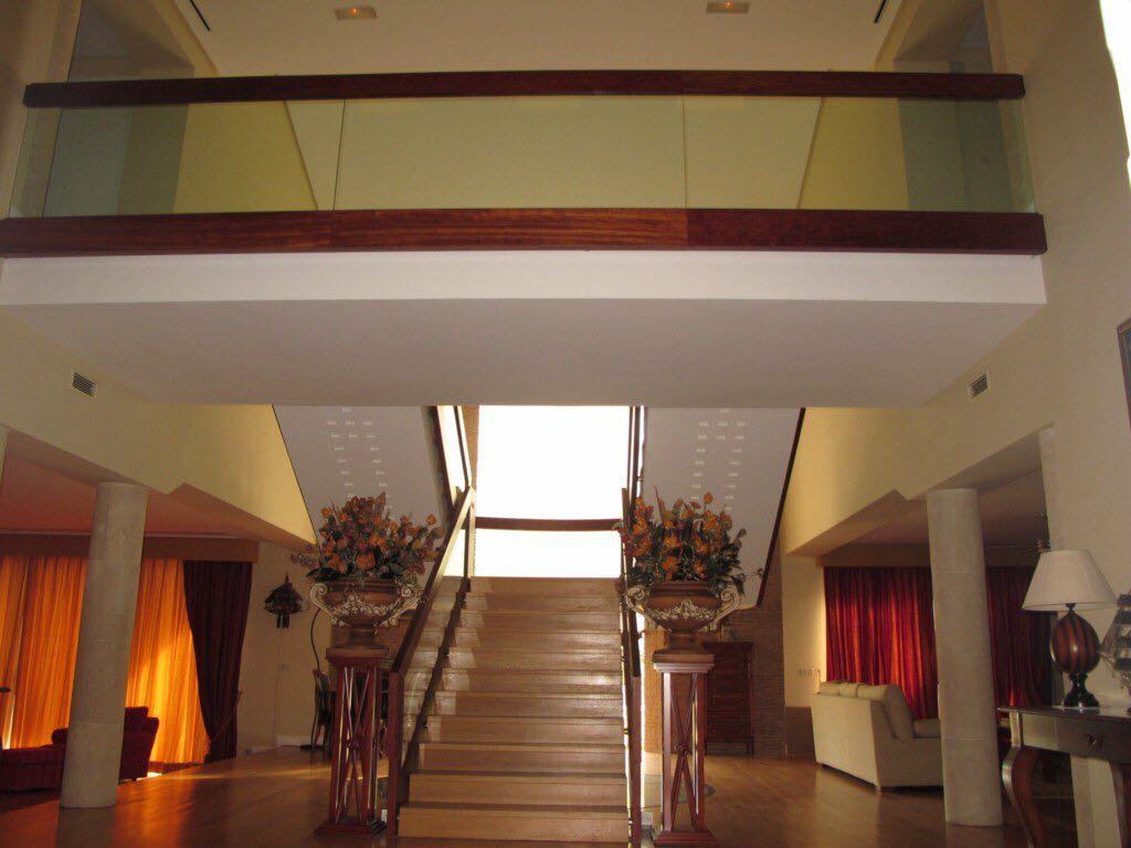 El espacio se distribuye en tres plantas. La planta principal acoge un espacioso hall que nos adentra en una majestuosa propiedad, en cuyo centro se encuentra una impresionante escalera decorativa combinada de mármol, cristal y madera que comunica con la planta superior. En esta planta encontramos un espacioso salón con ventanas panorámicas desde donde se disfruta de preciosas vistas al mar y a la amplia zona ajardinada. Junto a este se encuentra un elegante comedor y un bonito aseo de cortesía. Esta planta se distribuye en dos zonas, el ala izquierda , con acceso independiente, lo forman un gran despacho y dos dormitorios dobles con armarios empotrados, cada uno con su baño completo en suite y altos techos con vigas de madera con una decoración exquisita. Además hay otro dormitorio doble con baño en suite y además un pequeño salón con ventanas panorámicas. En el ala derecha se encuentra una gran sala acogedora con chimenea, ideal para reuniones familiares y con acceso directo a la terraza y a la gran cocina abierta totalmente equipada, ideal para amantes de la gastronomía con despensa, lavadero con maquina industrial.