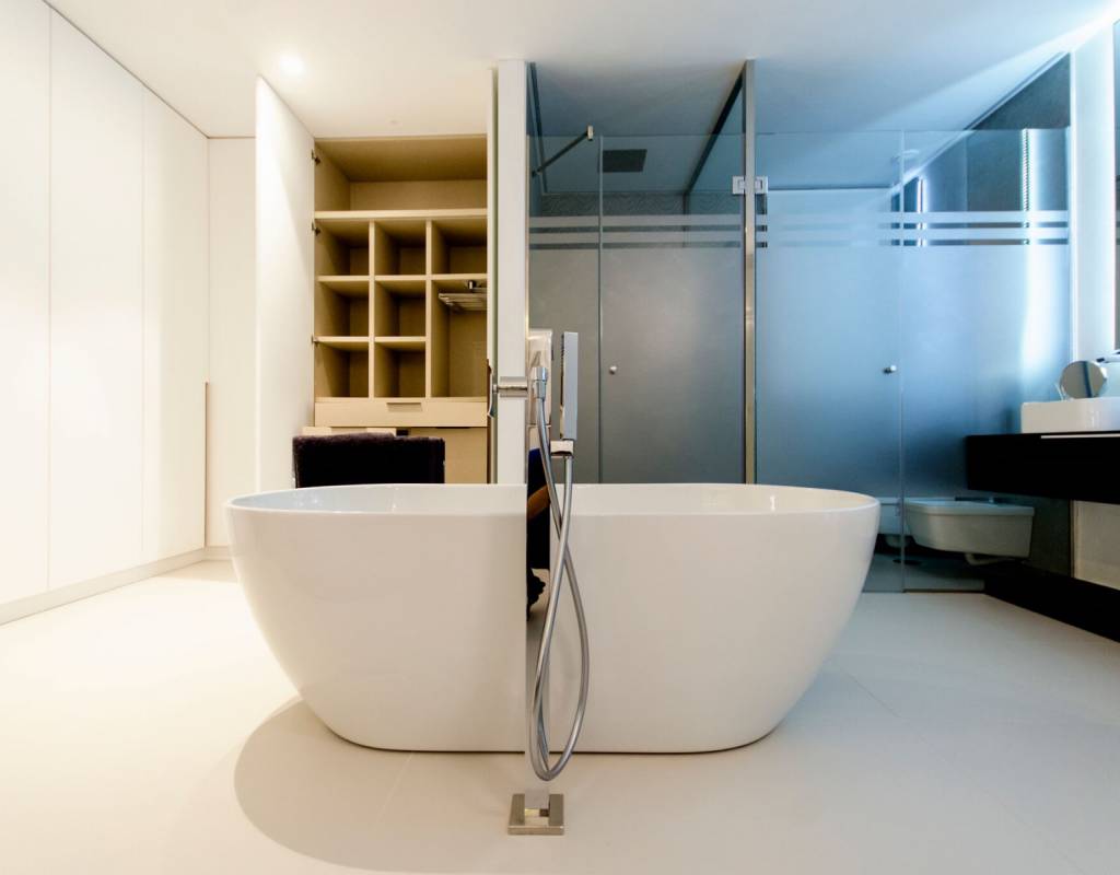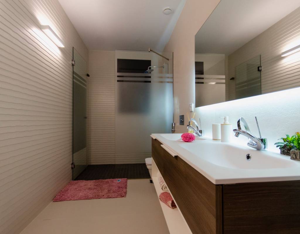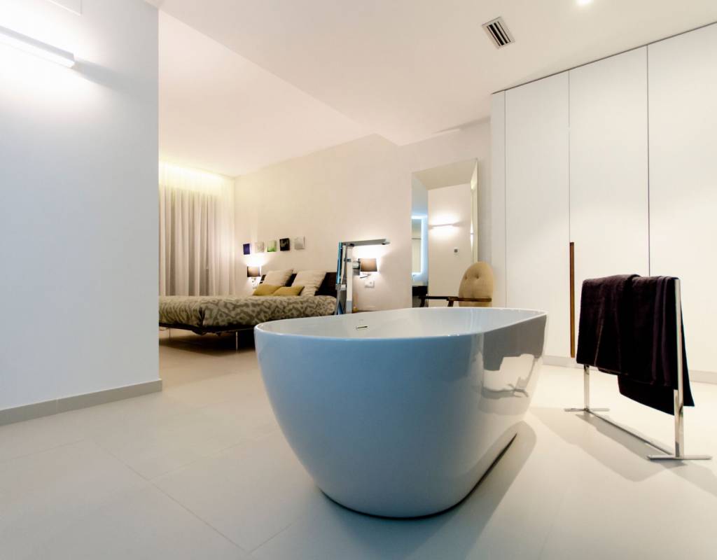 La gran terraza ofrece sol todo el día y cuenta con una piscina privada con función de cascada e iluminación nocturna.
