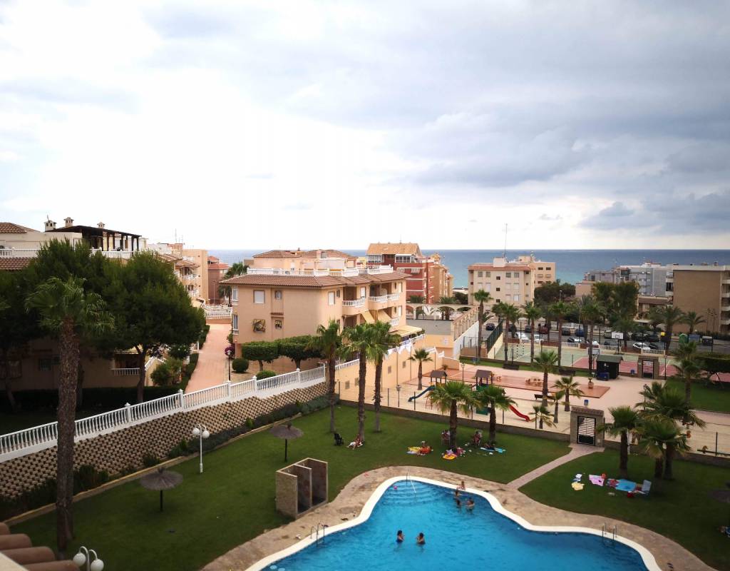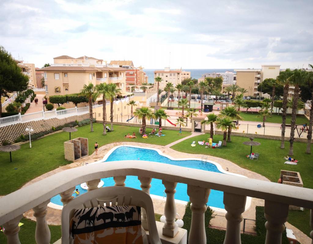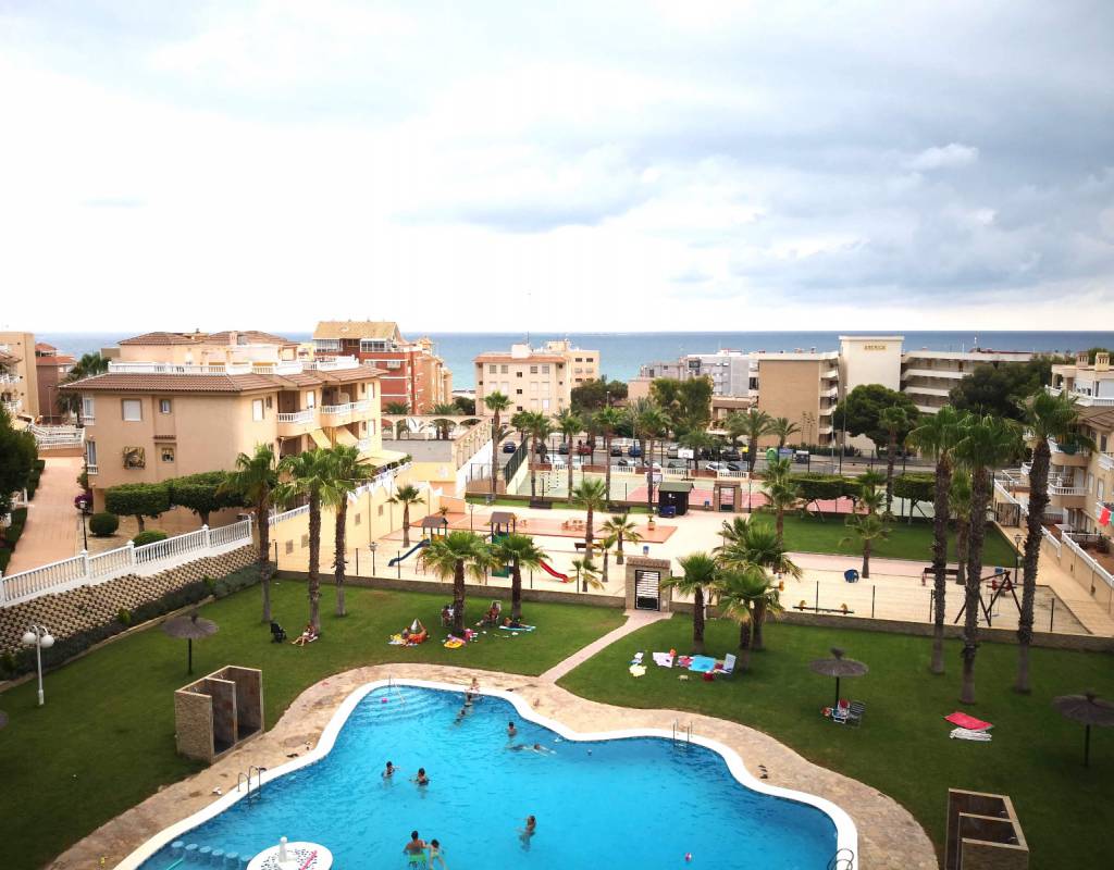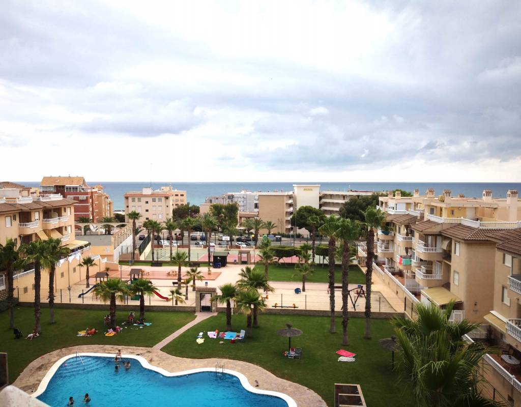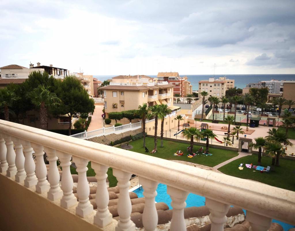 Con vistas al mar desde este ático en venta en Guardamar del Segura; perfectamente ubicado en el popular complejo de Pinar de Guardamar y situado a menos de 200 metros de las playas de bandera azul de Guardamar del Segura.