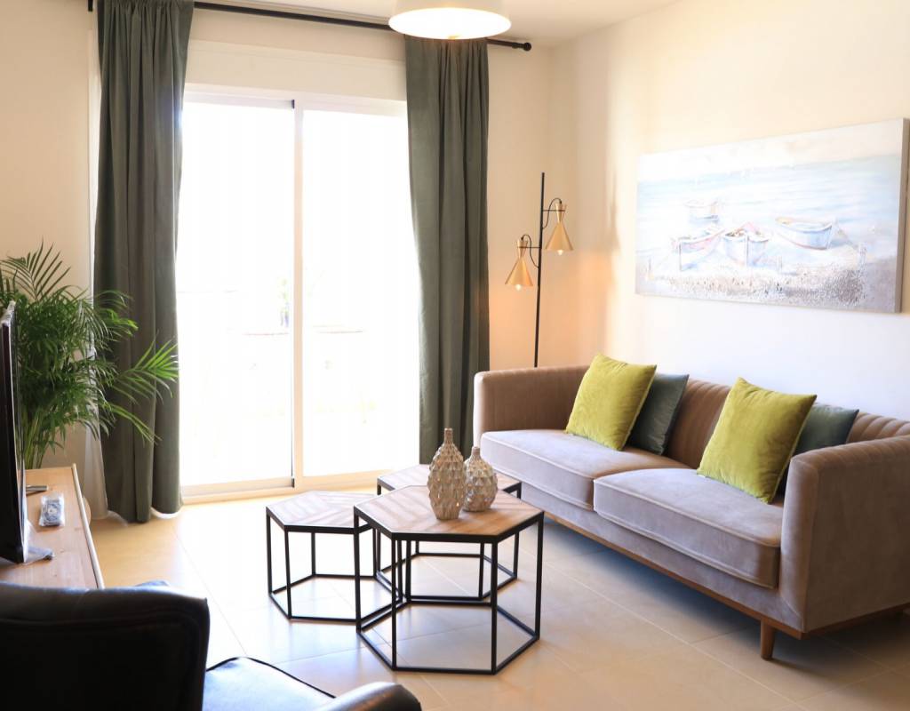 Ubicado en un pequeño complejo situado alrededor de una gran piscina comunitaria con jardines; los modernos apartamentos de 2 dormitorios son espaciosos y tienen 2 baños, gran salón-comedor con una moderna cocina abierta. Gran terraza con vistas a la piscina y a los jardines.