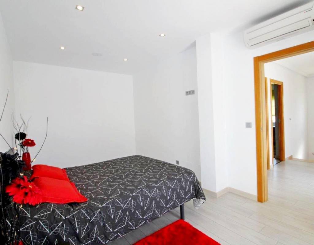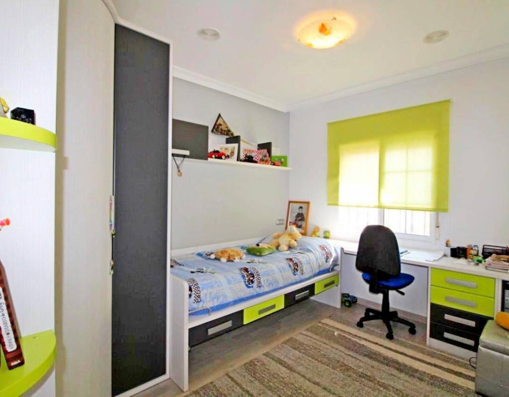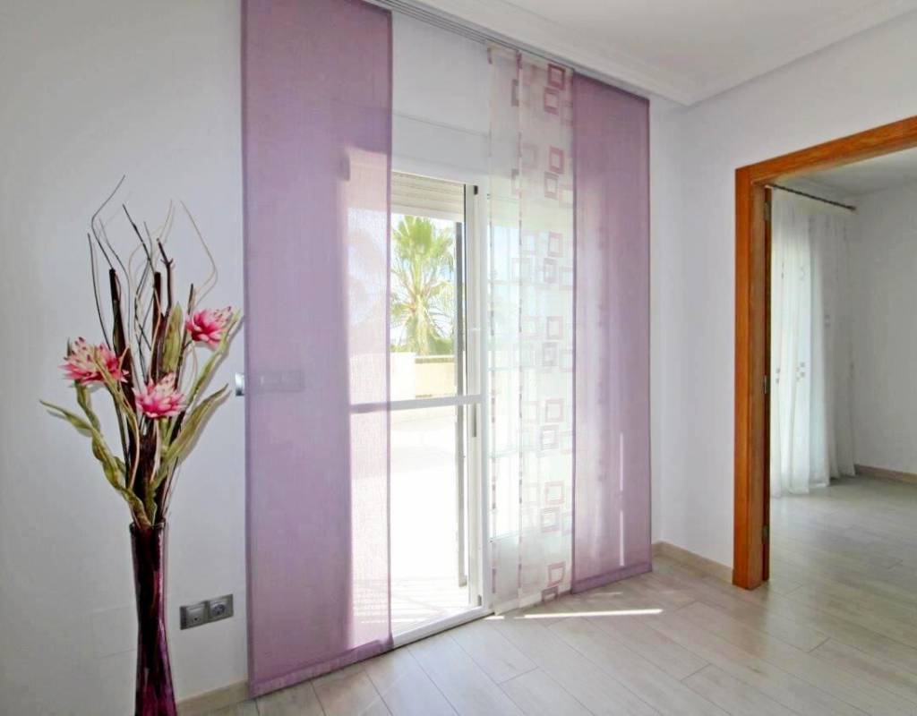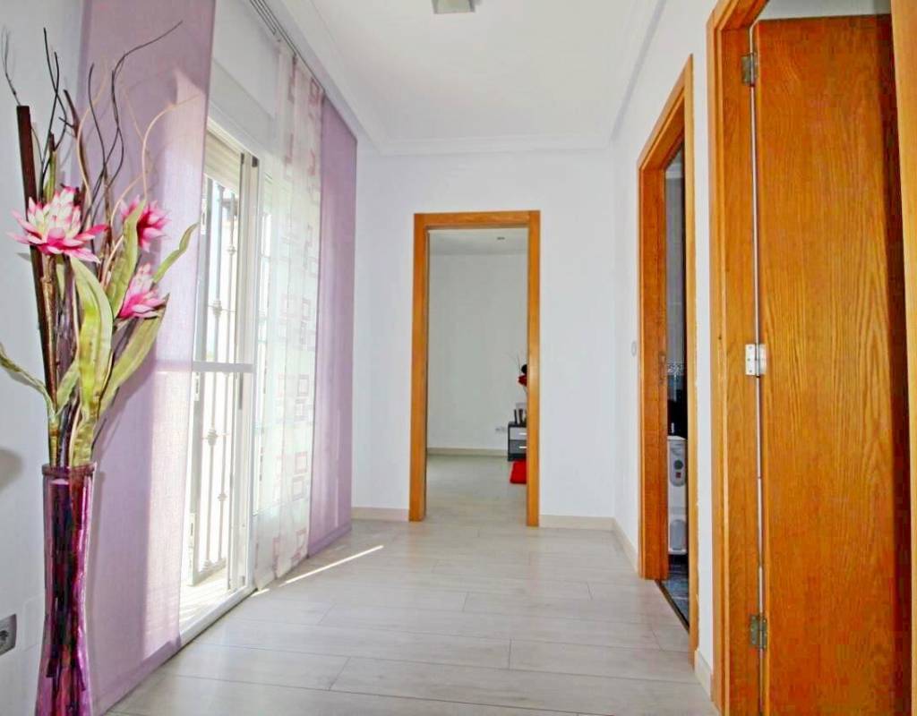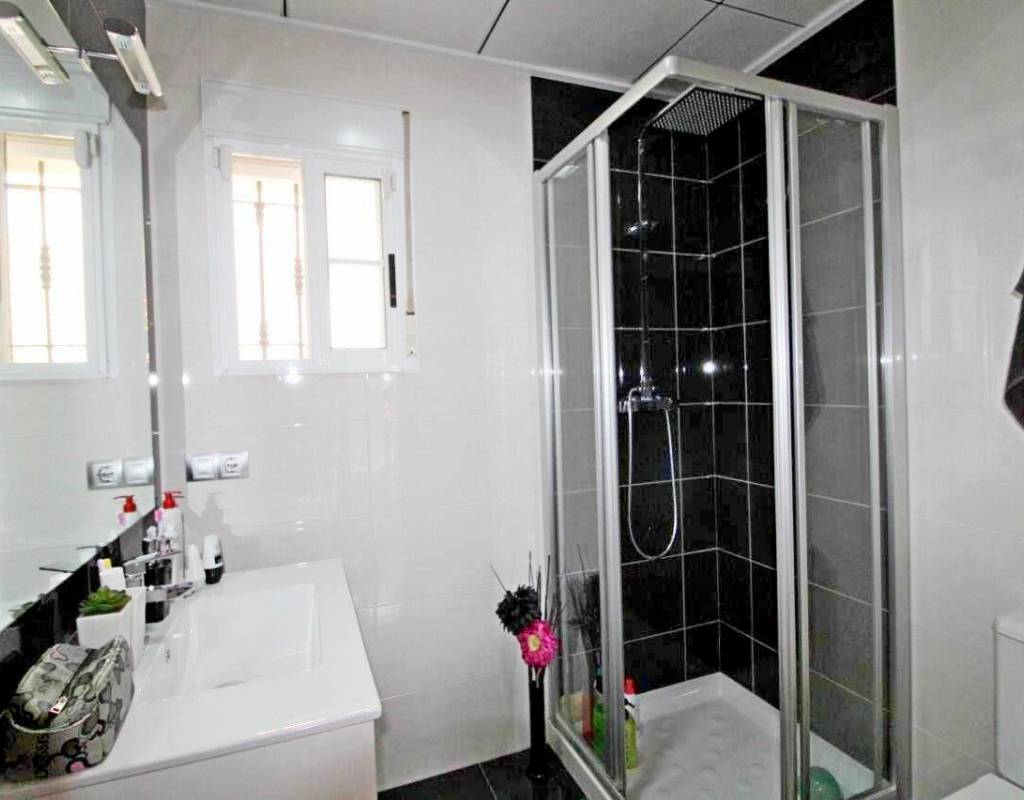 La casa es de aprox. 96 m2, dispone de 3 dormitorios y 2 baños. En la planta baja hay 1 dormitorio, una sala de estar dividida en dos áreas diferentes con vista al jardín, cocina amplia y luminosa y 1 baño. En la 1ª planta encontrará 2 dormitorios con acceso a una gran terraza y 1 baño. Solarium de 28 m2 con vistas despejadas sobre la laguna. La Propiedad también disfruta de uso de la piscina comunitaria. Se vende en excelentes condiciones y listo para entrar a vivir. La propiedad se encuentra a solo 10 minutos de las playas con bandera azul de Guardamar del Segura y a menos de 20 minutos de algunos de los mejores campos de golf de la zona.