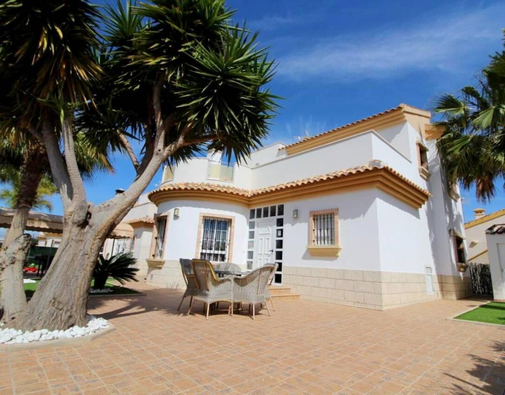 Nos complace ofrecer esta villa unifamiliar en venta; Ubicado en 2 plantas, orientada al sur y ubicado en la popular urbanización de El Raso de Guardamar del Segura.