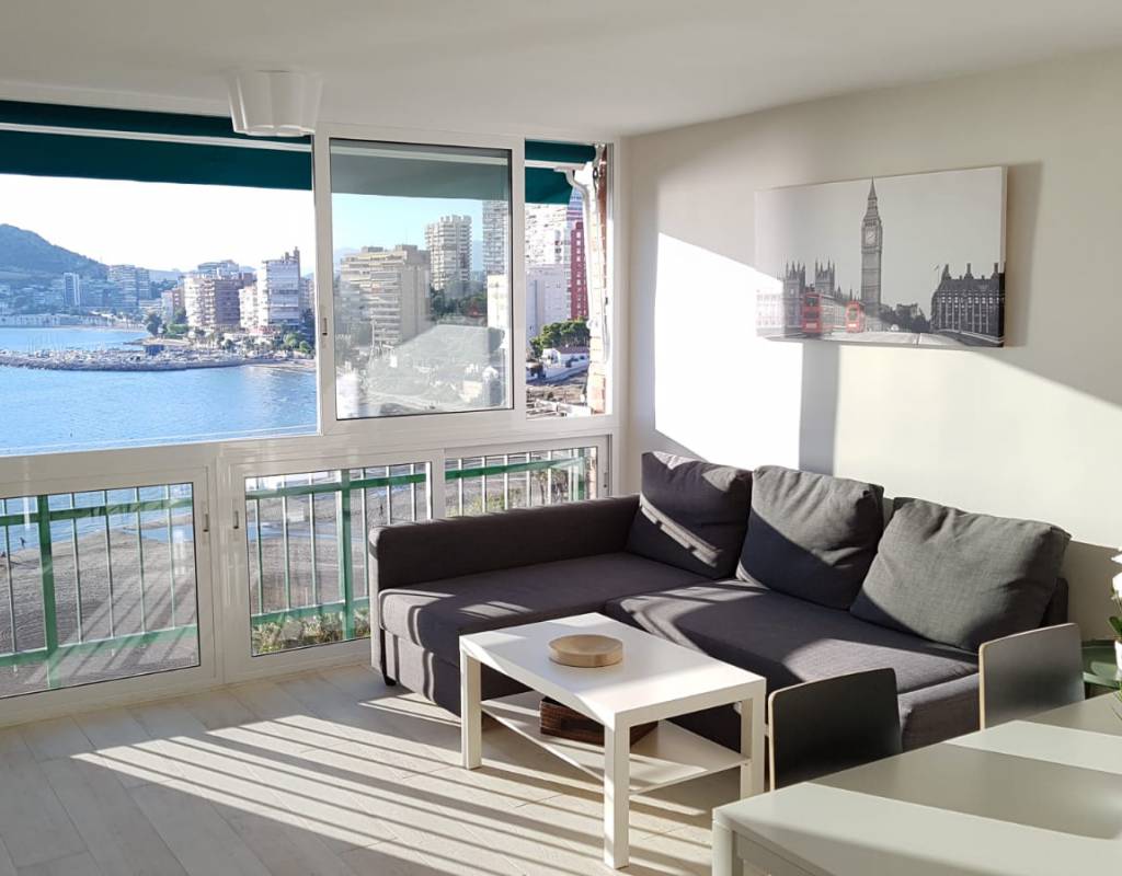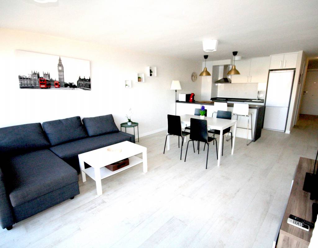 Precioso apartamento de 1 dormitorio, 1 baño con ducha, salón comedor, cocina francesa con lavavajillas, horno y cafetera, aire acondicionado, TV de pantalla plana, lavadora, instalación para wifi, frente al mar, cerca de todos los servicios y medios de comunicación.