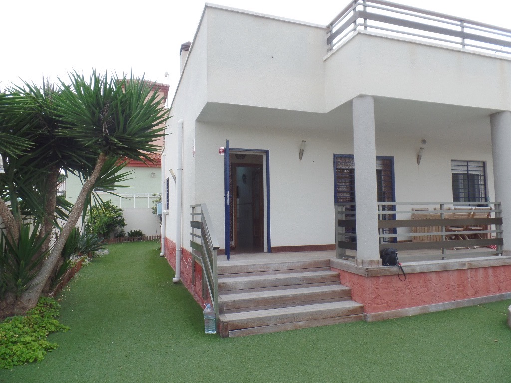 Chalet en planta baja, con parcela, independiente, distribuido en 3 dormitorios todos con armarios empotrados, dos baños completos, amplio salón comedor, cocina independiente con galería, porche, solarium y piscina privada, a 700 metros de la playa y junto a la pinada (Parque Alfonso XIII)