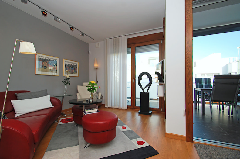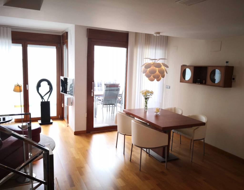 La superficie habitable es de aproximadamente 163 m2 y con una gran terraza, balcón y solarium, con una construcción total de aproximadamente 228 m2.