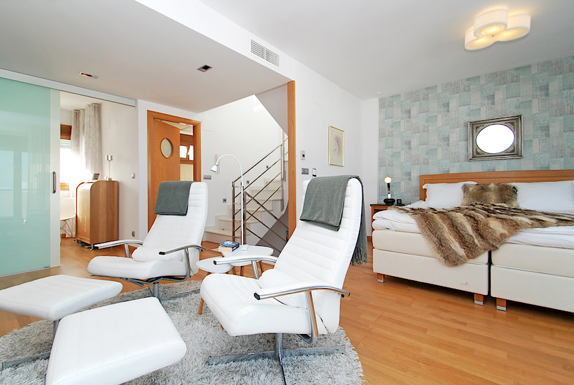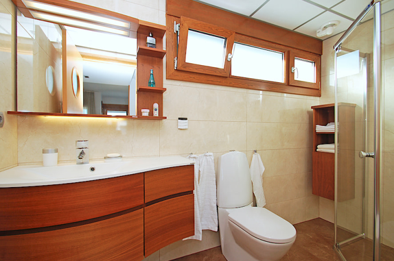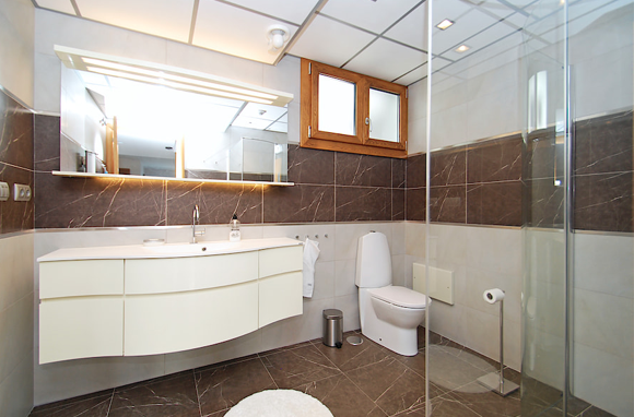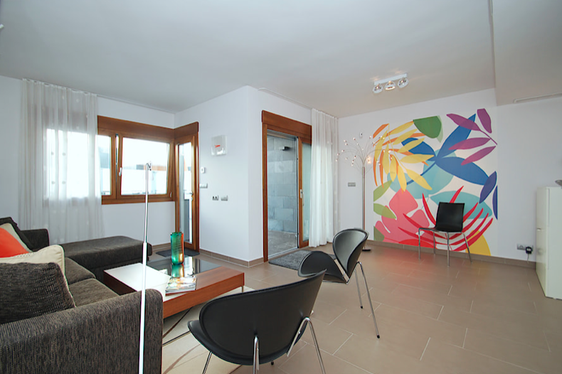 La planta inferior ofrece un apartamento de invitados que también incluye una sala de estar, un dormitorio y un baño grande. También dispone de una gran terraza principal para disfrutar de las comidas y bebidas al aire libre durante las cálidas noches mediterráneas.