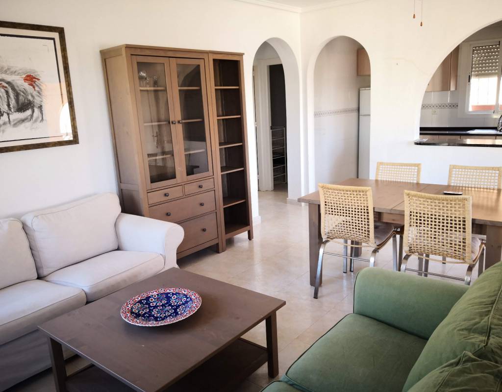 Amplio salón-comedor y cocina abierta, cuenta con 3 dormitorios y 2 baños.