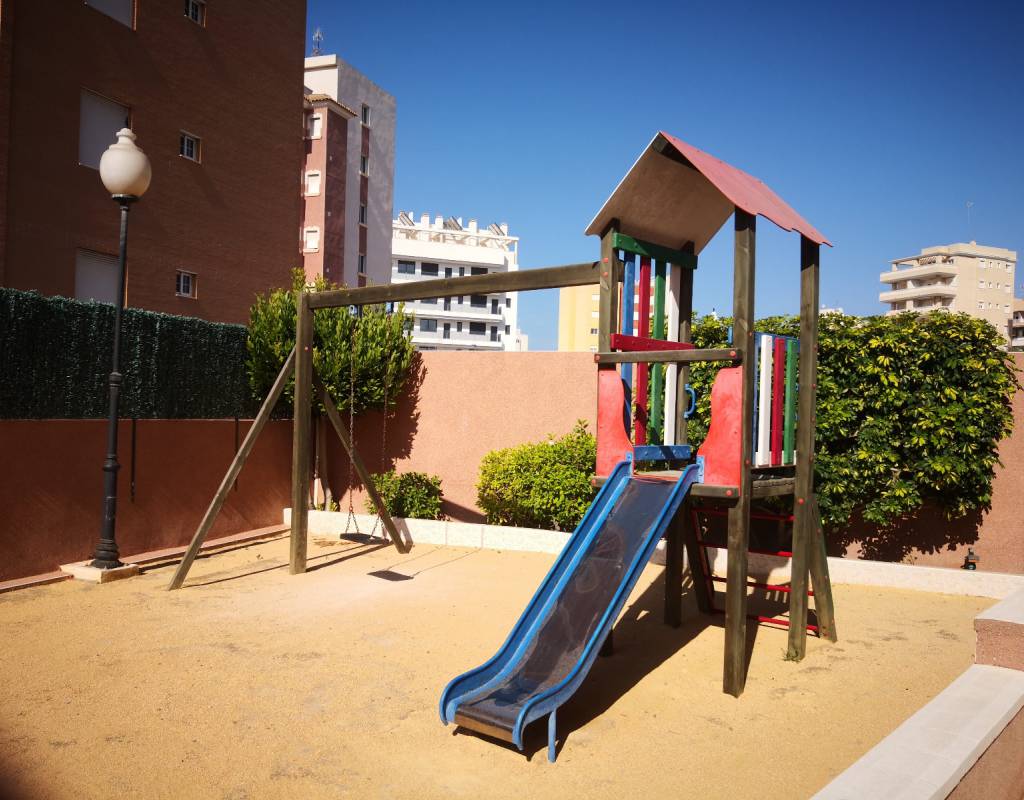 Situado en una primera planta con ascensor, orientada al sureste; está ubicado en un pequeño complejo de solo 20 viviendas que comparten y disfrutan de la piscina comunitaria, la terraza y zona de juegos para niños.