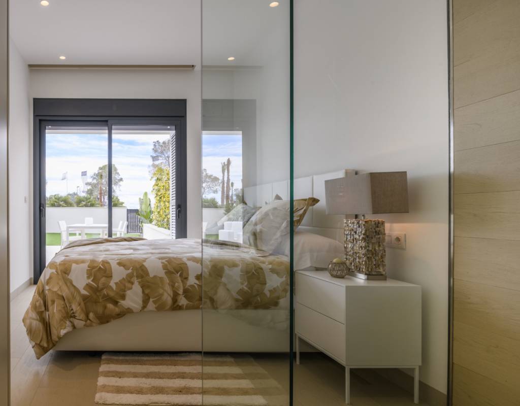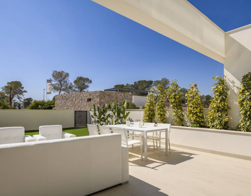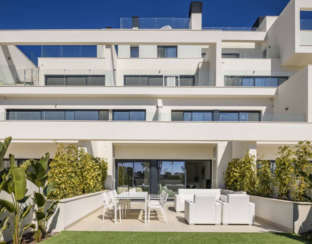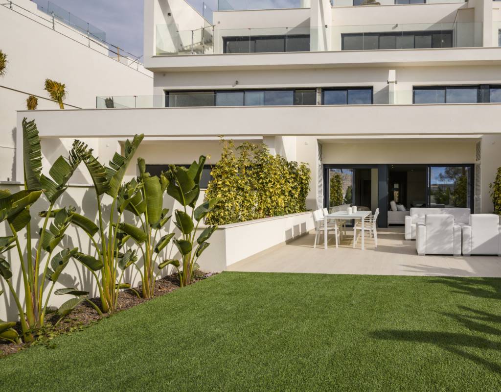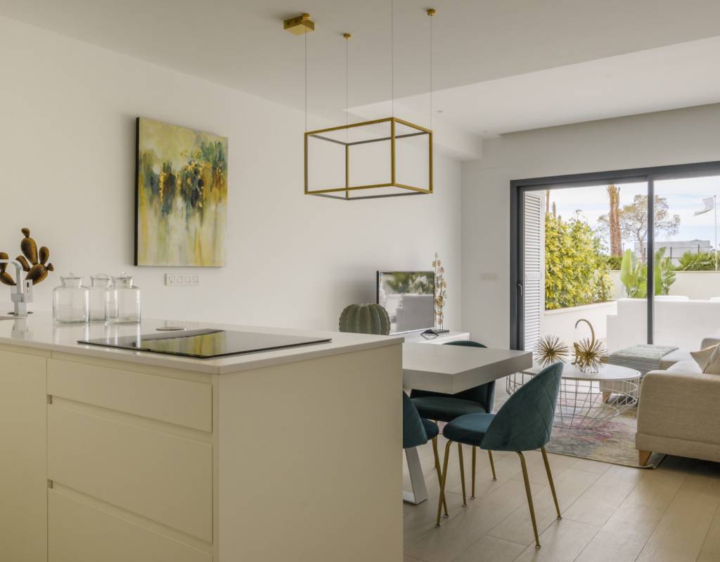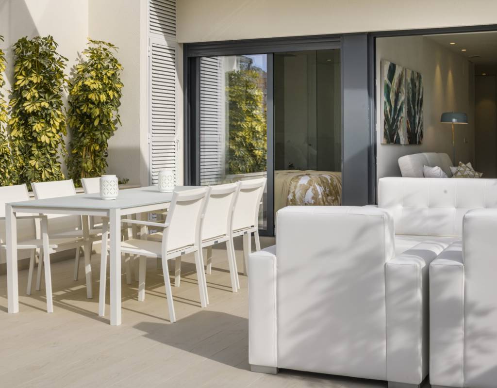 Atención al detalle en el diseño y a los materiales empleados; estas lujosas viviendas ofrecen 2 dormitorios, 2 baños, amplias y luminosas salas de estar y comedor, con cocina abierta. Amplia terraza de 20m2 con una parcel grande disponible (opción de planta baja), y zona de jardín.