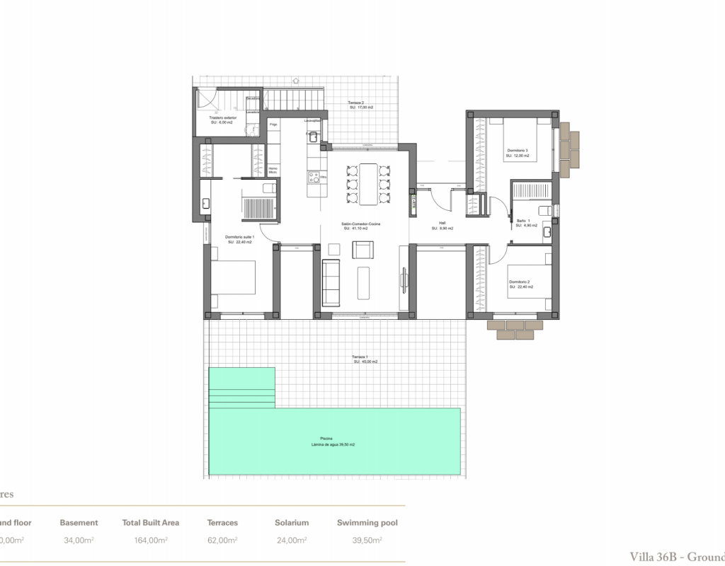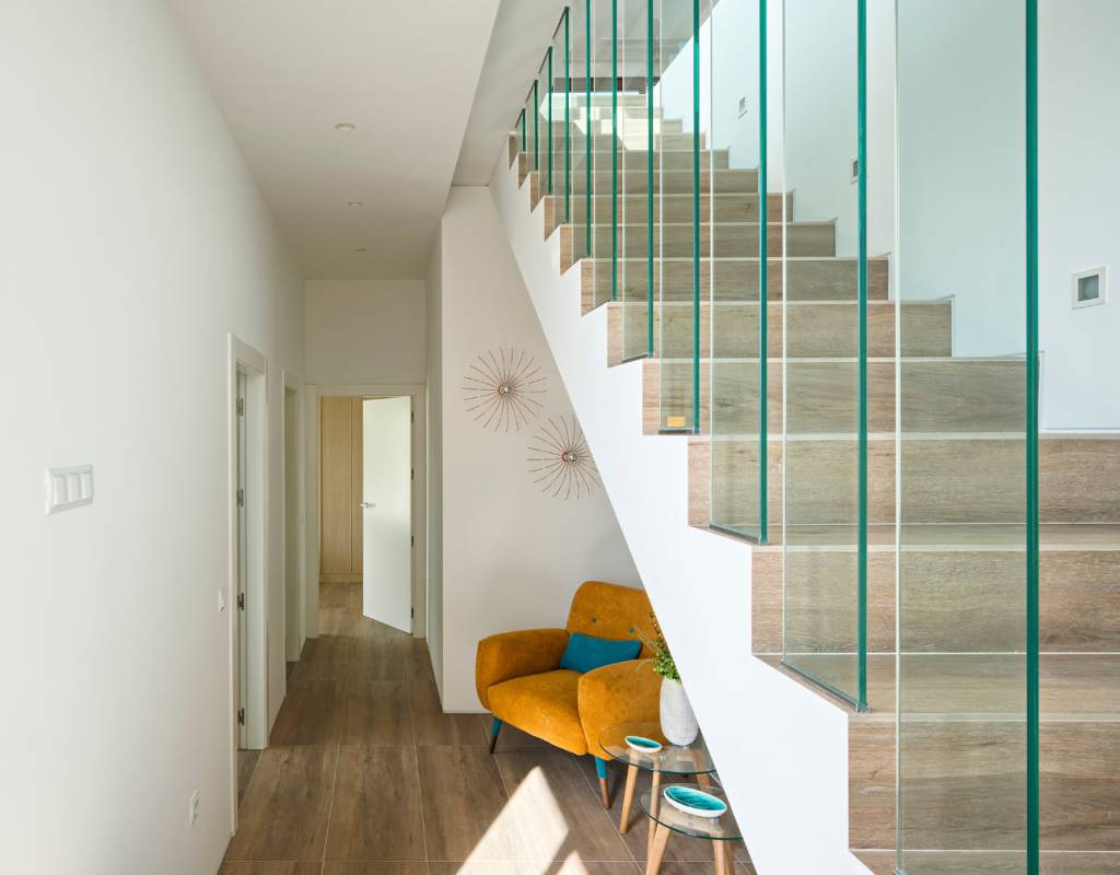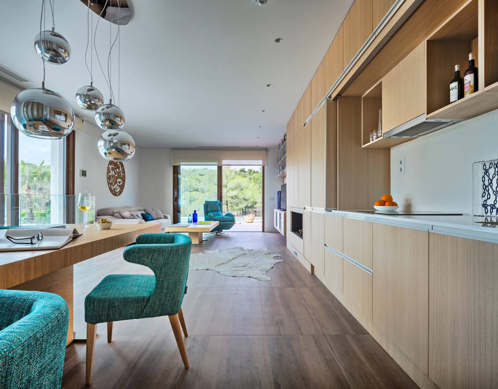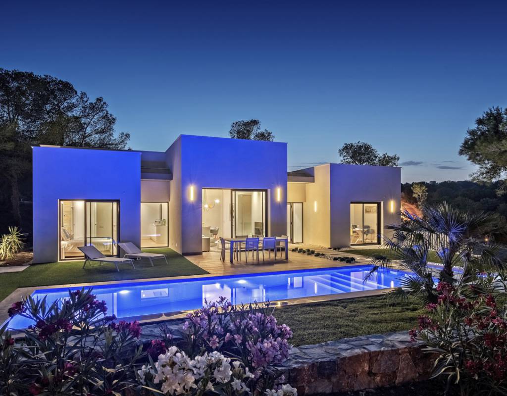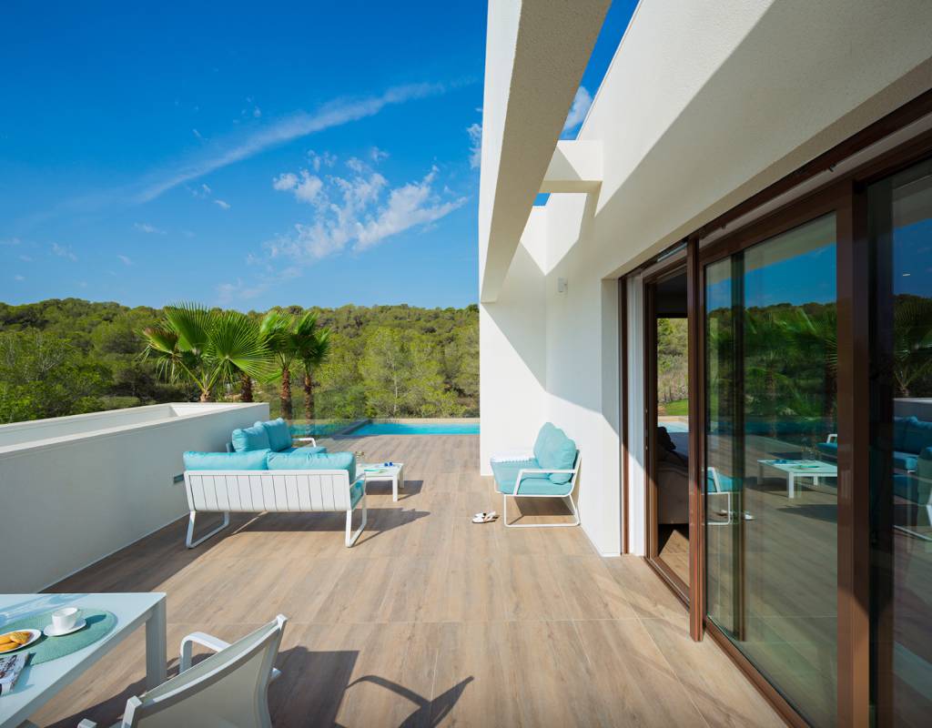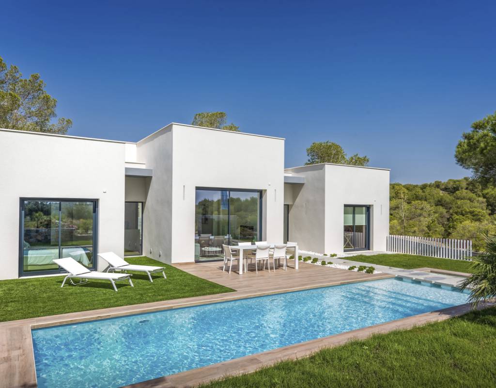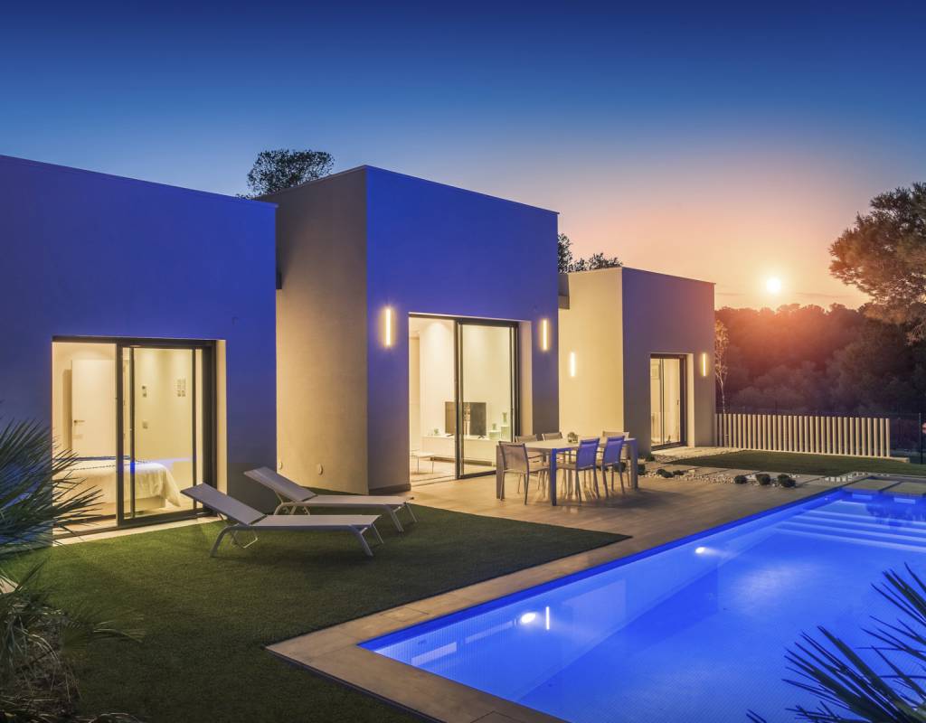 Atención al detalle en el diseño y en los materiales empleados; Estas lujosas propiedades ofrecen 3 dormitorios, 2 baños, amplias y luminosas salas de estar y comedor con cocina abierta. Con una superficie útil de aprox. 130m2. Con una gran terraza de aproximadamente 62m2, con solarium y sótano, con un espacio total de aproximadamente 250m2. Ubicado en una parcela privada de 1300m2 y con una impresionante piscina de tamaño total de casi 40m2.
