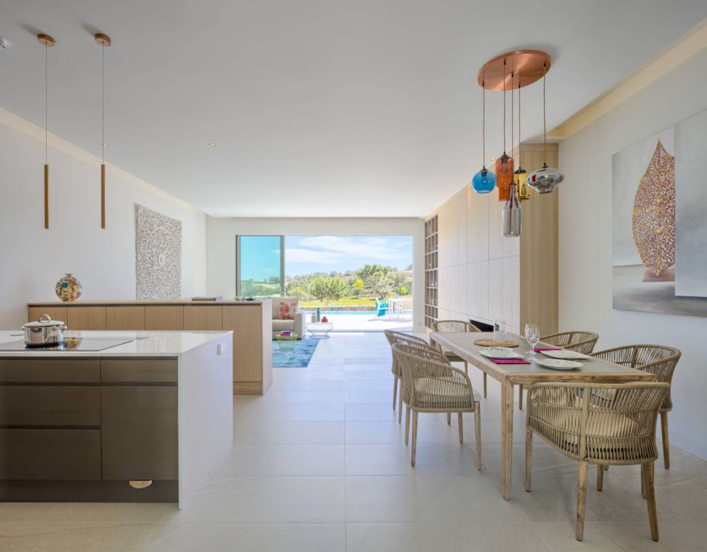Atención al detalle en el diseño y a los materiales empleados; La vivienda ofrece 4 dormitorios, 4 baños, amplios y luminosas salas de estar y comedor con cocina abierta. Superficie habitable total aprox. 300m2. Con una gran terraza de aproximadamente 40m2 con vistas al campo de golf y con una piscina de más de 30m2. Ubicado en una parcela privada de aproximadamente 750m2 que ofrece una elegante casa de lujo.