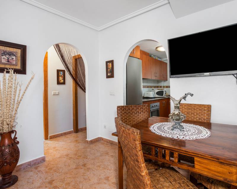 Se vende en excelentes condiciones; Consta de 3 dormitorios, 2 baños, amplia sala de estar con cocina. Situado en una parcela de aproximadamente 200m2 con espacio al aire libre que rodea la propiedad. El uso de la piscina comunitaria y de los jardines están incluidos. La propiedad también se beneficia de un gran espacio de almacenamiento situado en la construcción inferior.