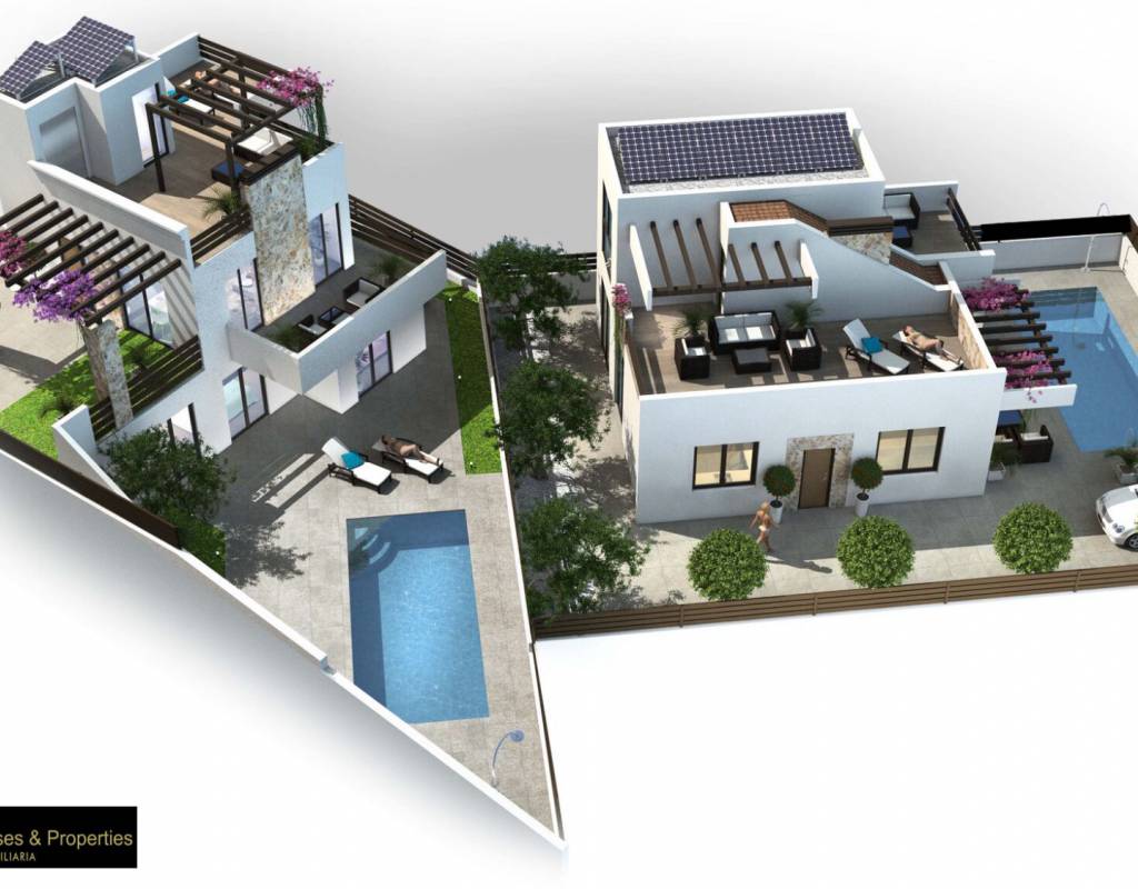 Son de diseño moderno y con una construcción de calidad; La propiedad consta de 3 dormitorios y 2 baños, amplio salón y comedor con acceso a la gran terraza y piscina privada de 3m x 7m. Ubicado en dos plantas de aproximadamente 105m2 y en una parcela privada de 268m2.