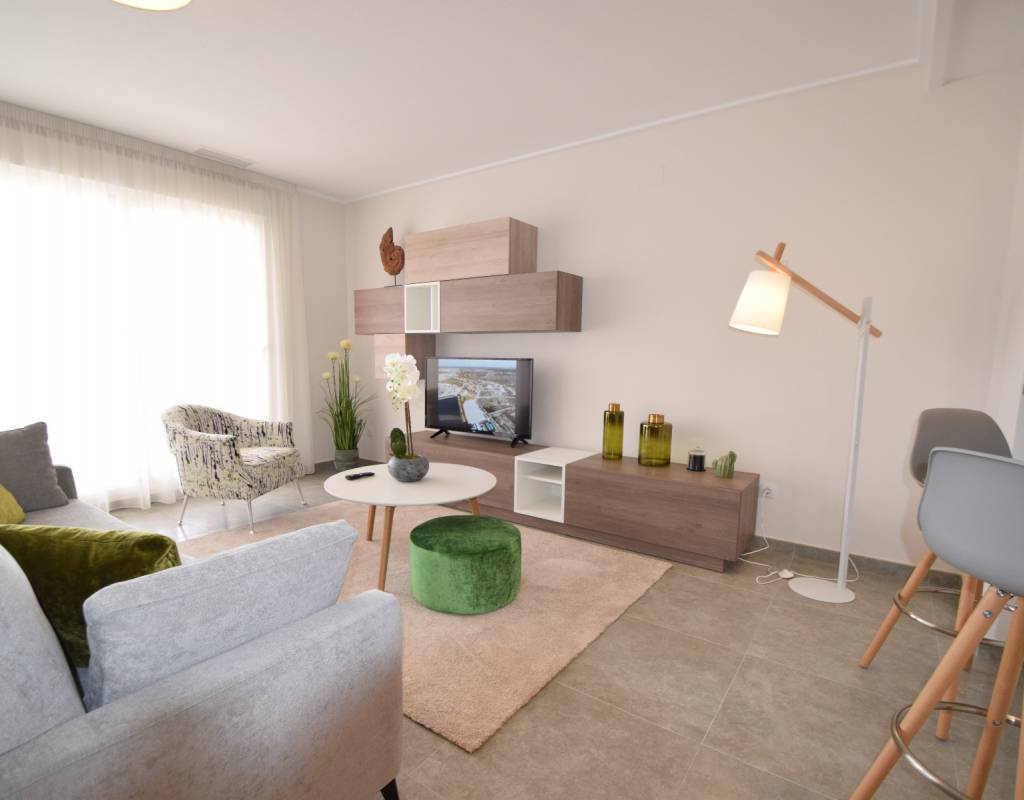 estos apartamentos modernos, amplios y luminosos, son de planta abierta y cuentan con una gran salon- comedor, cocina abierta y con vistas desde los balcones o terrazas.