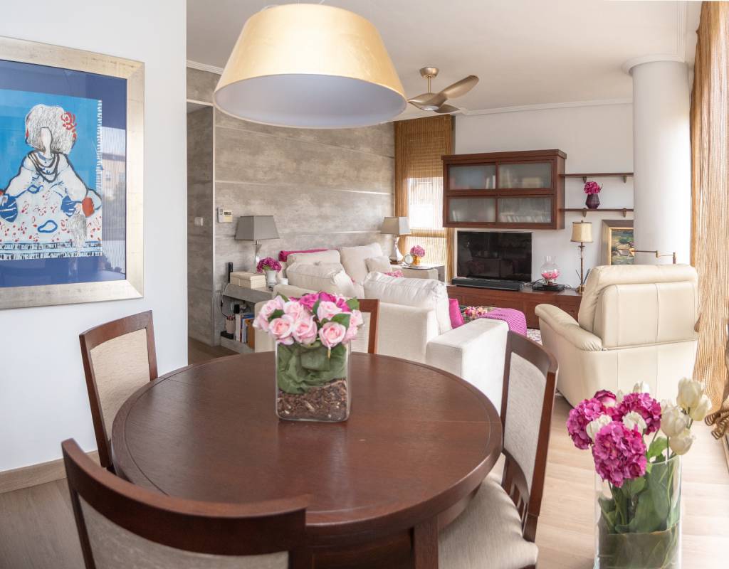 Magnifica vivienda de 150 m2, 4 dormitorios y 2 baños, con garaje y trastero opcional, hall de entrada, cocina con galería, amplio salón-comedor con salida a un balcón. Zona de dormitorios, dormitorio principal con baño en suite y con una pequeña terraza, tres dormitorios dobles con armarios empotrados, y baño completo.