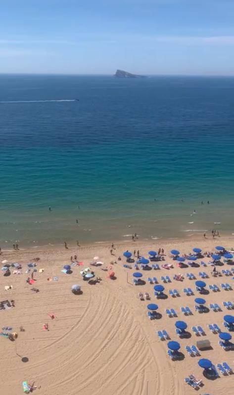 Es una vivienda de dos habitaciones y dos Baños muy bién distribuida y con unas vistas únicas al mar mediterraneo ya que está en primerisima linea de mar y con salida directa al paseo de la playa. Cuenta con salón -cocina integrados en un mismo espacio desde el cual se ve la playa y el peñon de Benidorm.